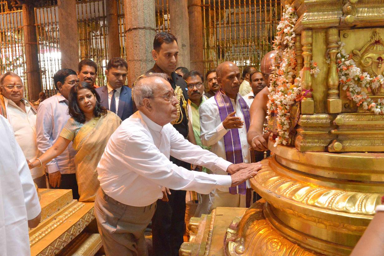 | Caption: | The President of India, Shri Pranab Mukherjee offering prayer at Sri Padmavathi Ammavari Temple, at Tiruchanoor, in Tirupati, Andhra Pradesh on December 28, 2016. |