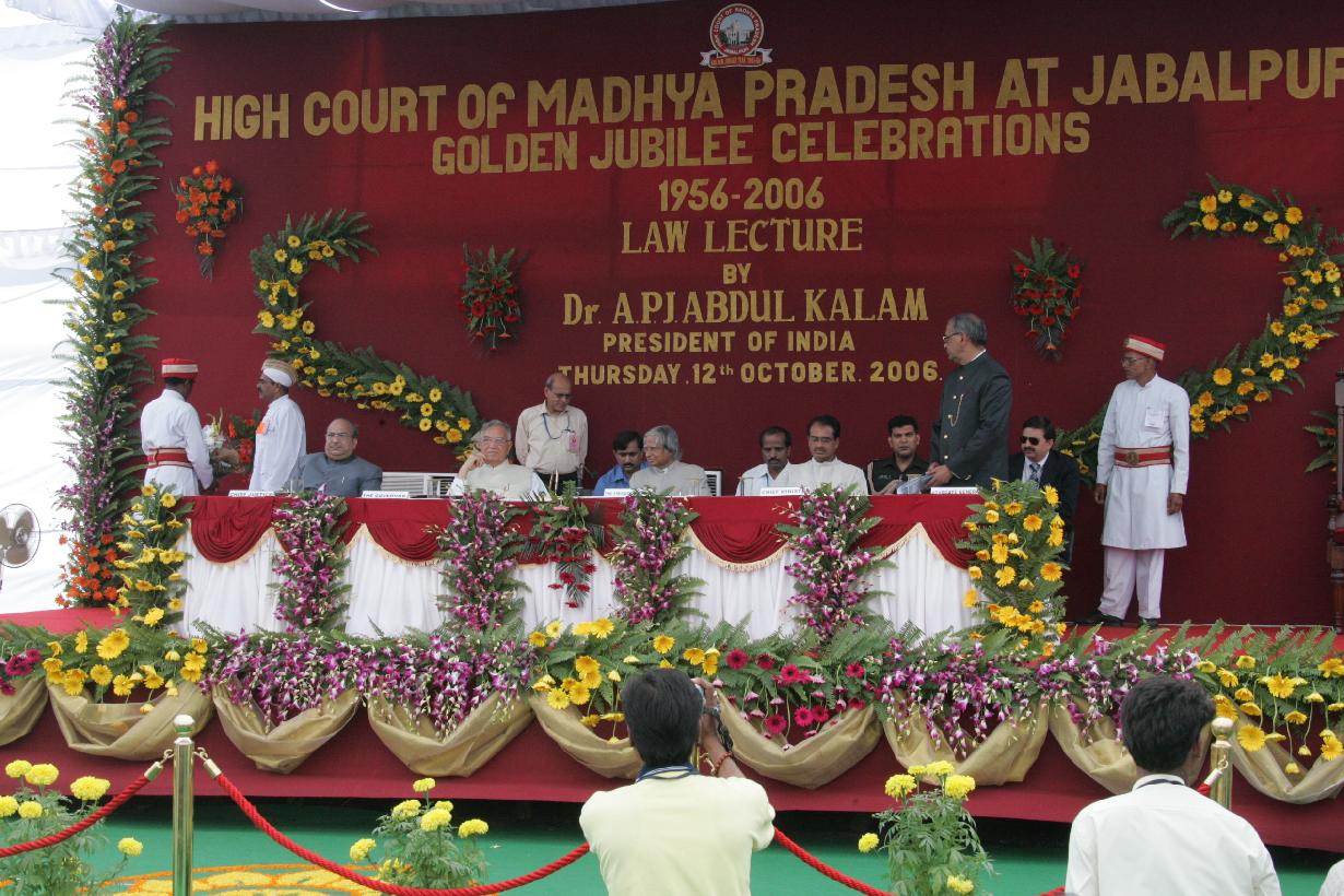 | Caption: | The President of India, Dr A P J Abdul Kalam delivering a lecture at the Golden Jubilee Year of the High Court of Madhya Pradesh at Jabalpur in Madhya Pradesh on Oct 12, 2006 |