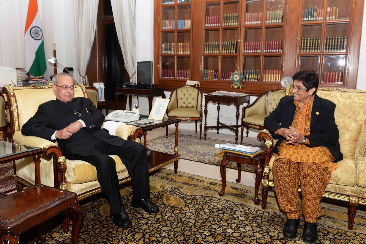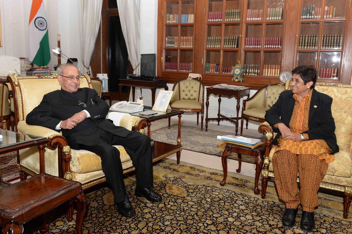 | Caption: | The President of India, Shri Pranab Mukherjee meeting with Dr. Kiran Bedi, Lt. Governor of Puducherry, at Rashtrapati Bhavan on January 04, 2017. |
