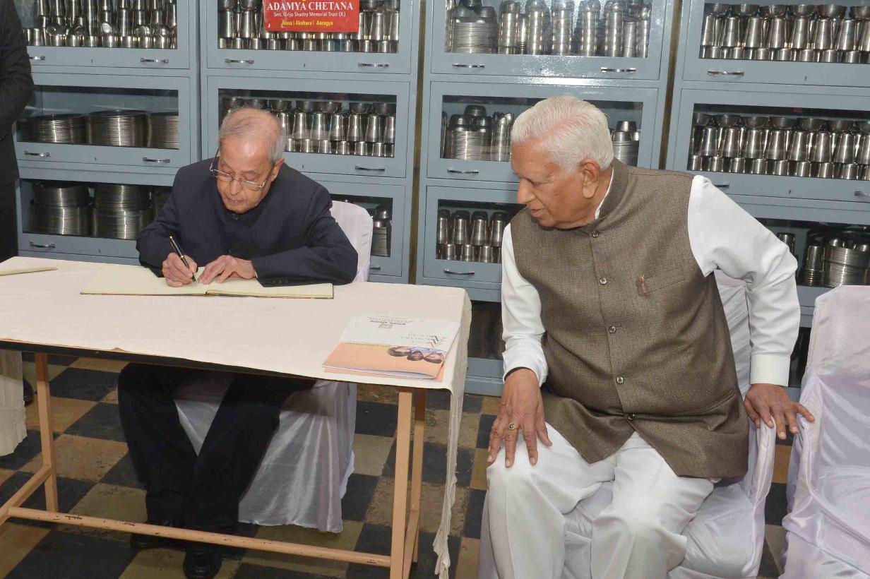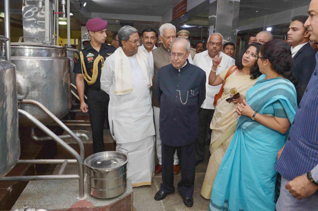 | Caption: | The President of India, Shri Pranab Mukherjee visiting the Adamya Chetana-Midday Meal Kitchen for over one lakh children, at Bengaluru, in Karnataka on December 30, 2016. |