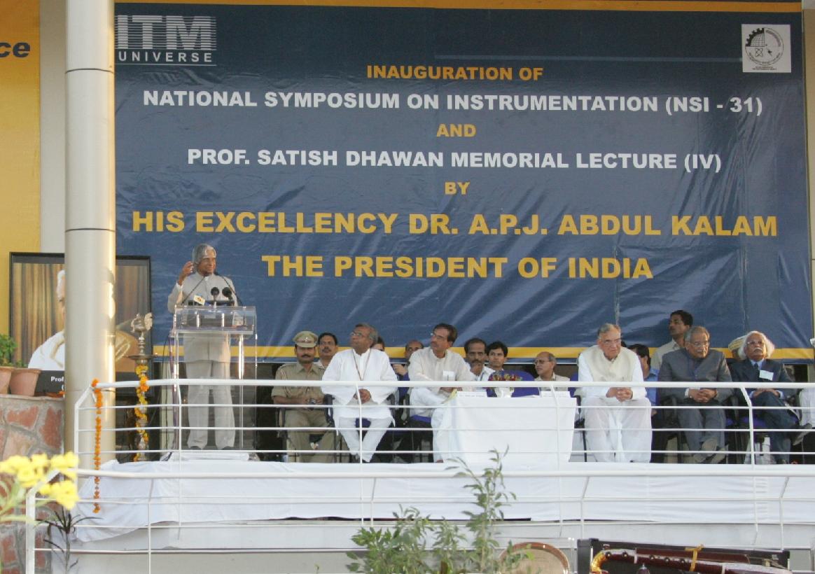 | Caption: | The President of India, Dr A P J Abdul Kalam delivering the 4th Prof Satish Dhawan Memorial lecture at the inauguration of the National Symposium of the Instrument Society of India at Gwalior in Madhya Pradesh on Oct 12, 2006 |