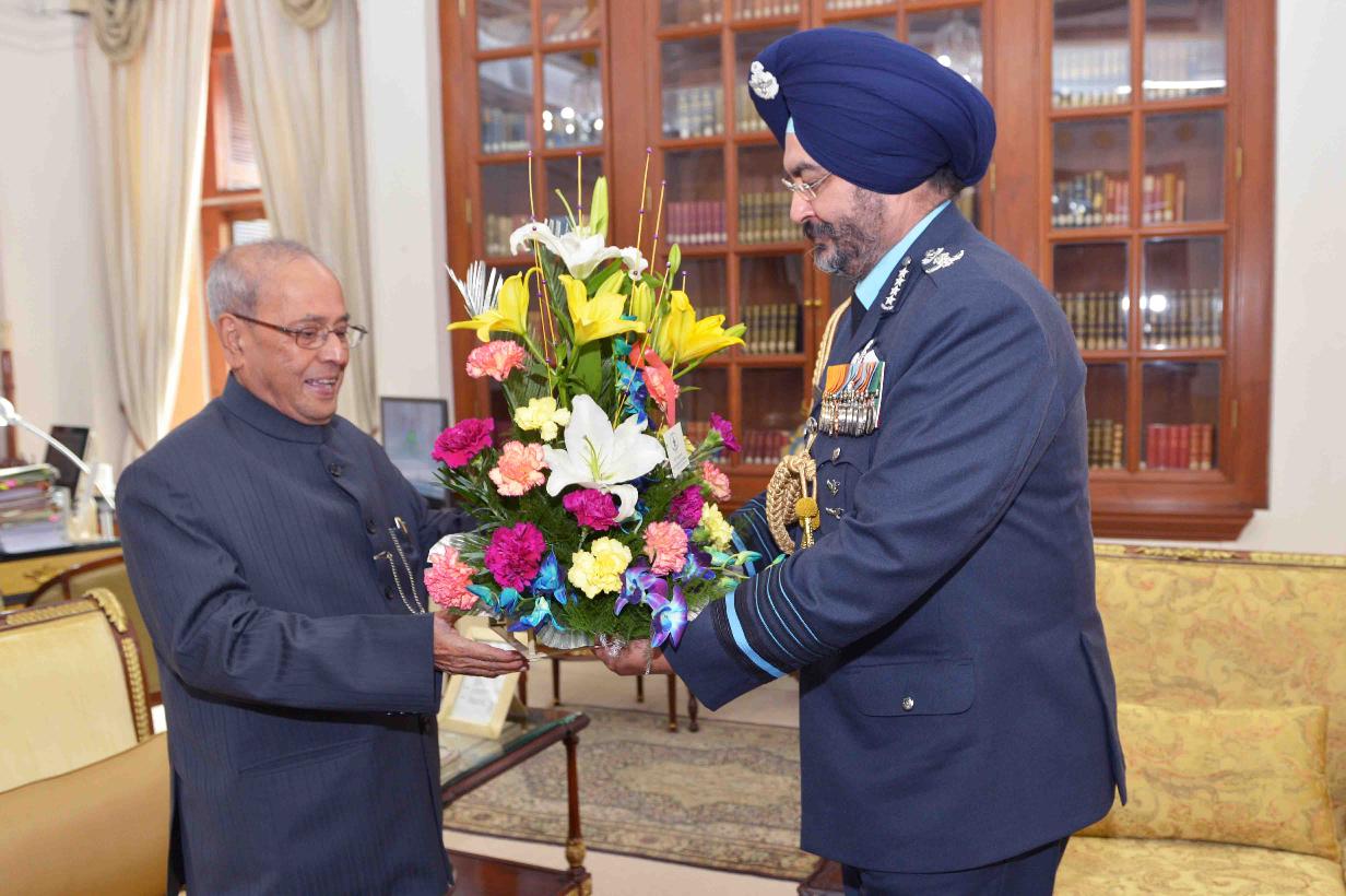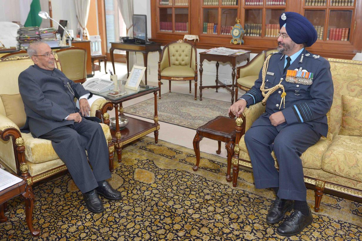 | Caption: | The President of India, Shri Pranab Mukherjee meeting with Air Chief Marshal B.S. Dhanoa, Chief of the Air Staff, at Rashtrapati Bhavan on January 02, 2017. |