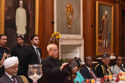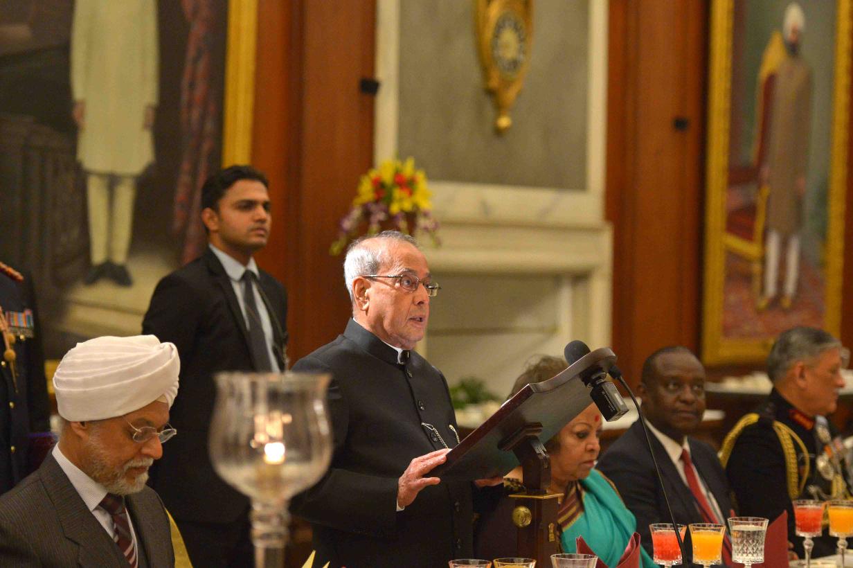 | Caption: | The President of India, Shri Pranab Mukherjee addressing at the Banquet hosted by him, in honour of the President of the Republic of Kenya, H.E. Mr. Uhuru Kenyatta, at Rashtrapati Bhavan on January 11, 2017. |