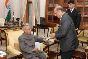| Caption: | The President of India, Shri Pranab Mukherjee meeting with Shri Navin Chawla, former Chief Election Commissioner of India, at Rashtrapati Bhavan on February 03, 2017. |