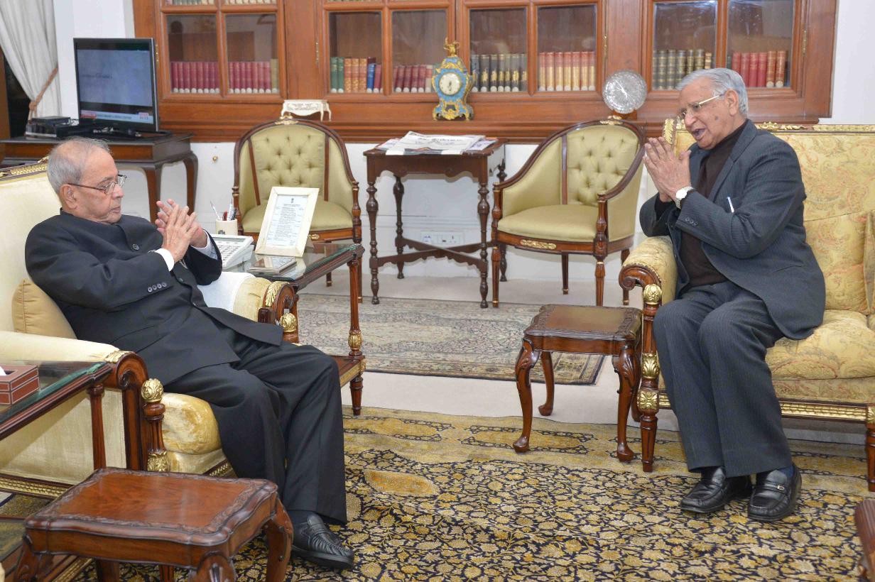 | Caption: | The President of India, Shri Pranab Mukherjee meeting with Shri Virendra Kataria, former Lt. Governor of Puducherry, at Rashtrapati Bhavan on January 13, 2017. |
