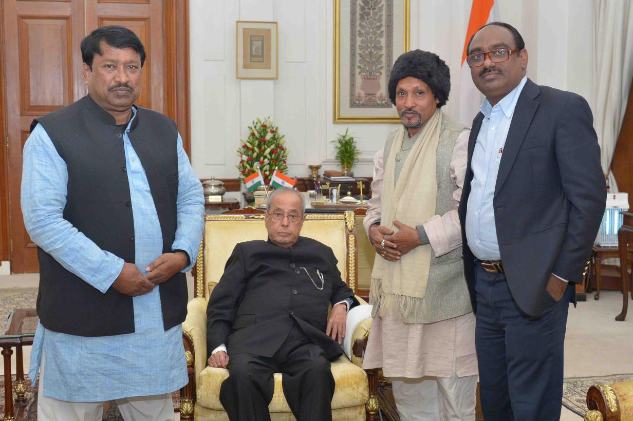 | Caption: | The President of India, Shri Pranab Mukherjee meeting with Shri Kritibas Sardar with others, at Rashtrapati Bhavan on January 13, 2017. |