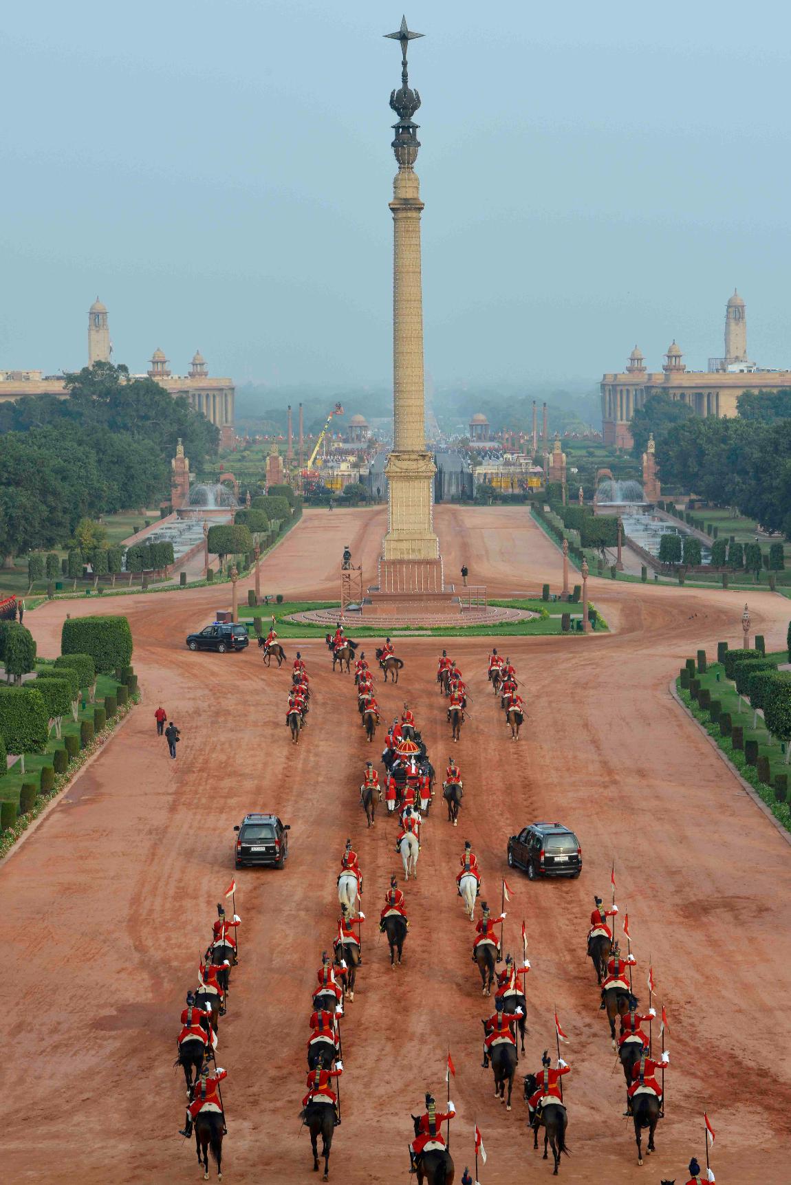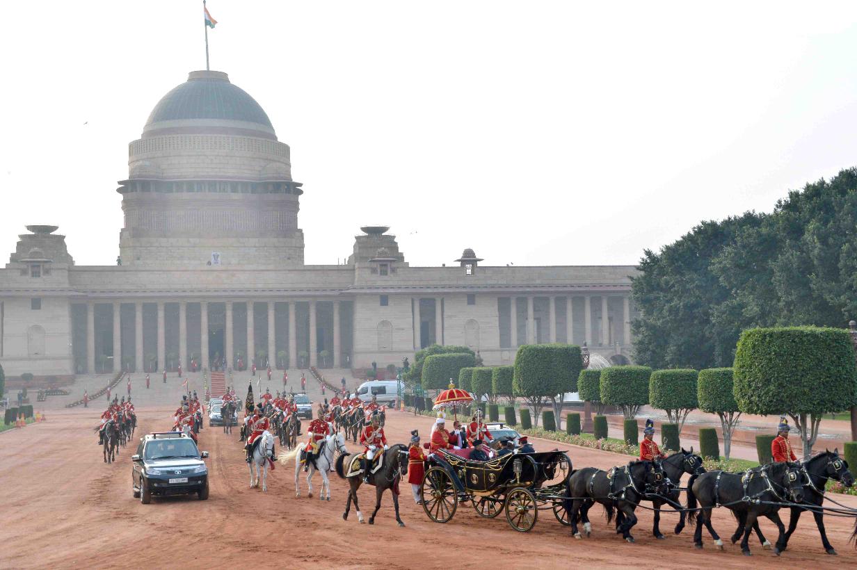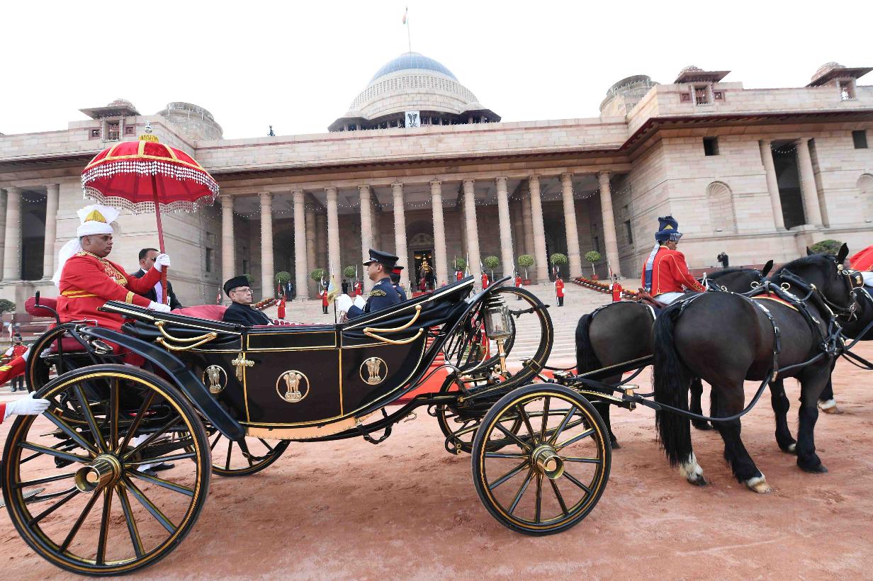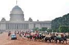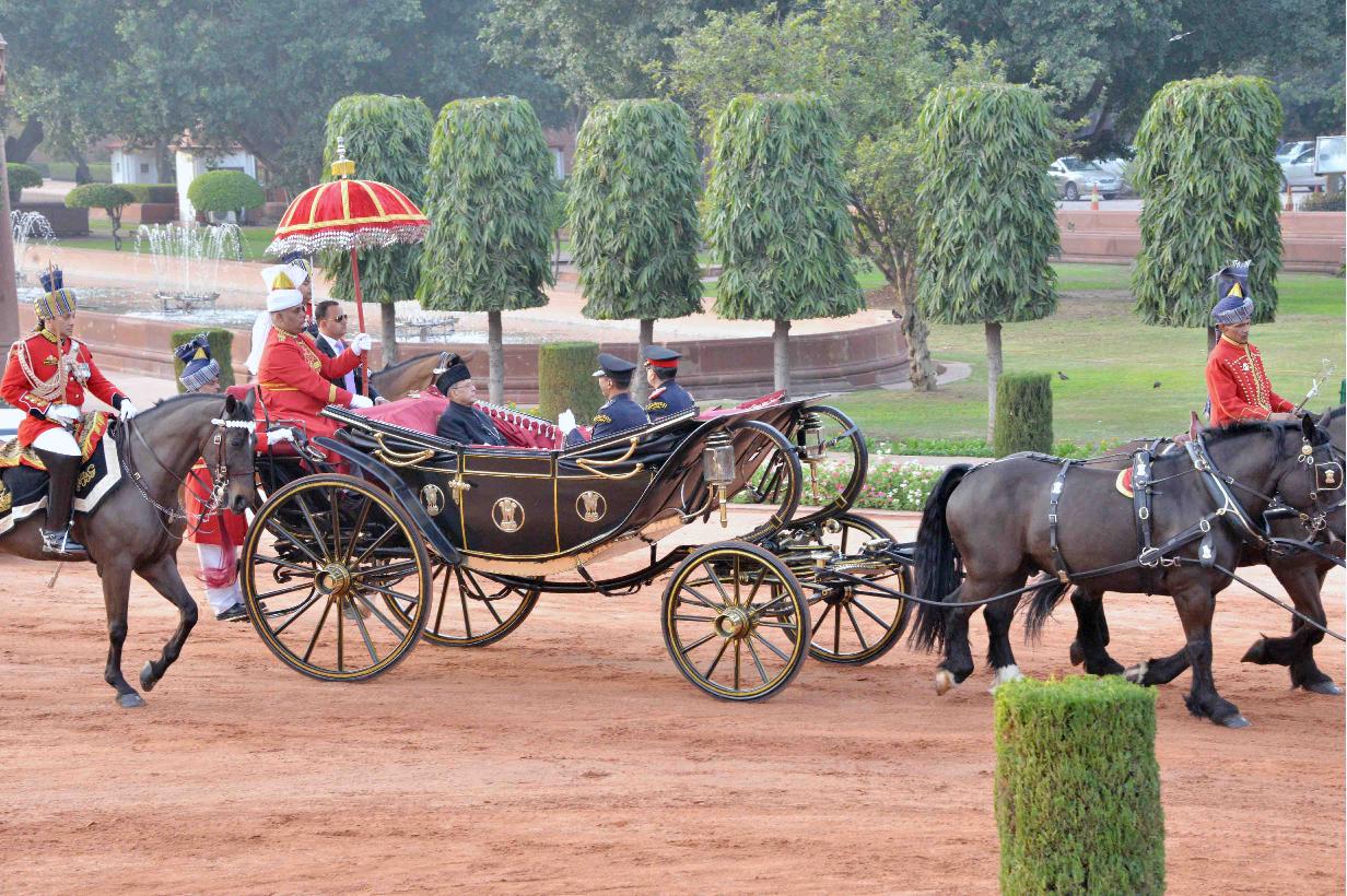 | Caption: | The President of India, Shri Pranab Mukherjee departs from Rashtrapati Bhavan for witnessing the 'Beating Retreat' at Vijay Chowk in New Delhi on January 29, 2017. |
