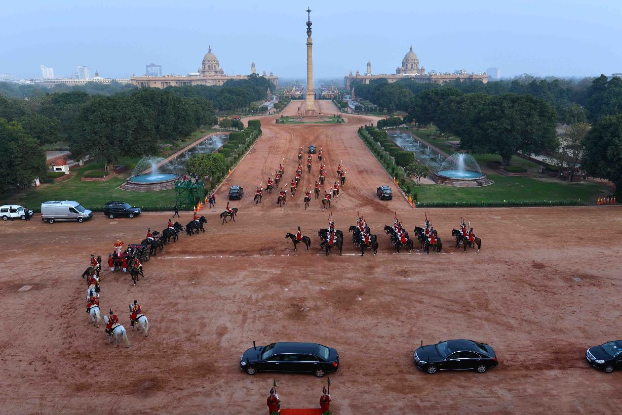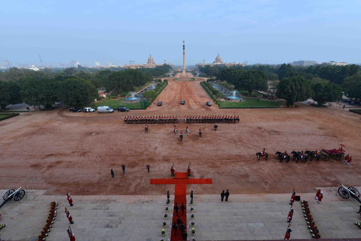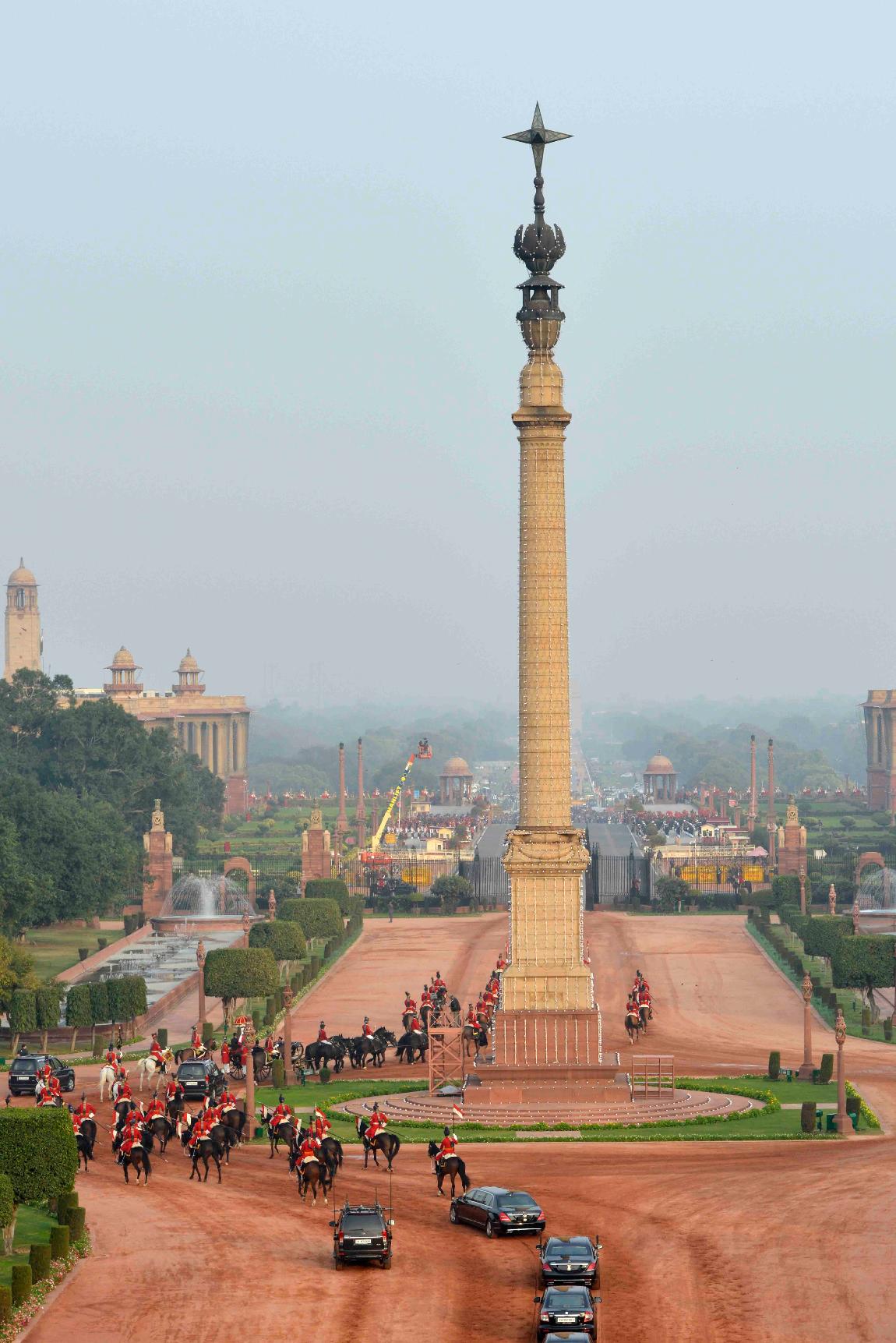 | Caption: | The President of India, Shri Pranab Mukherjee departs from Rashtrapati Bhavan for witnessing the 'Beating Retreat' at Vijay Chowk in New Delhi on January 29, 2017. |