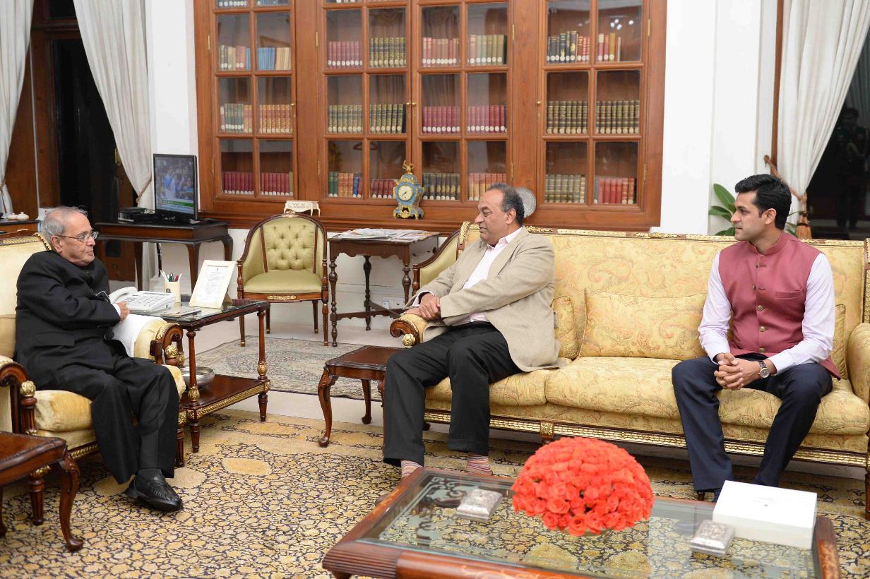 | Caption: | The President of India, Shri Pranab Mukherjee meeting with Shri Mukul Rohatgi, Attorney General of India alongwith his son, at Rashtrapati Bhavan on February 06, 2017. |