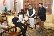 | Caption: | The President of India, Shri Pranab Mukherjee meeting with Shri Kamana Prabhakara Rao, Andhra Pradesh Congress Committee Official Spokesperson alongwith his son Shri Chandra Prakash, at Rashtrapati Bhavan on February 06, 2017. |