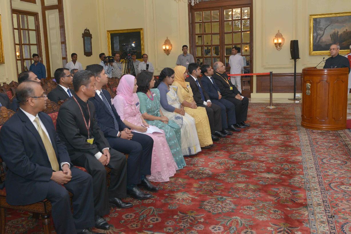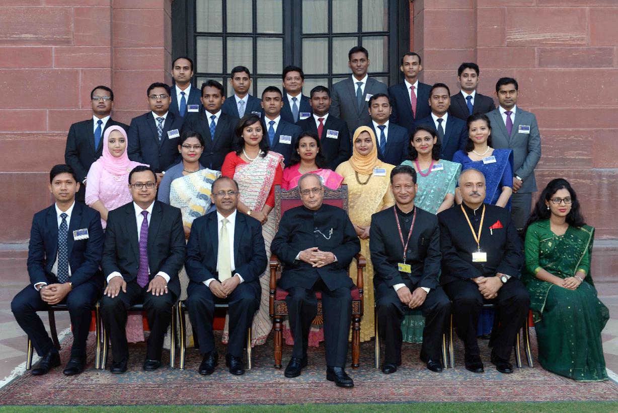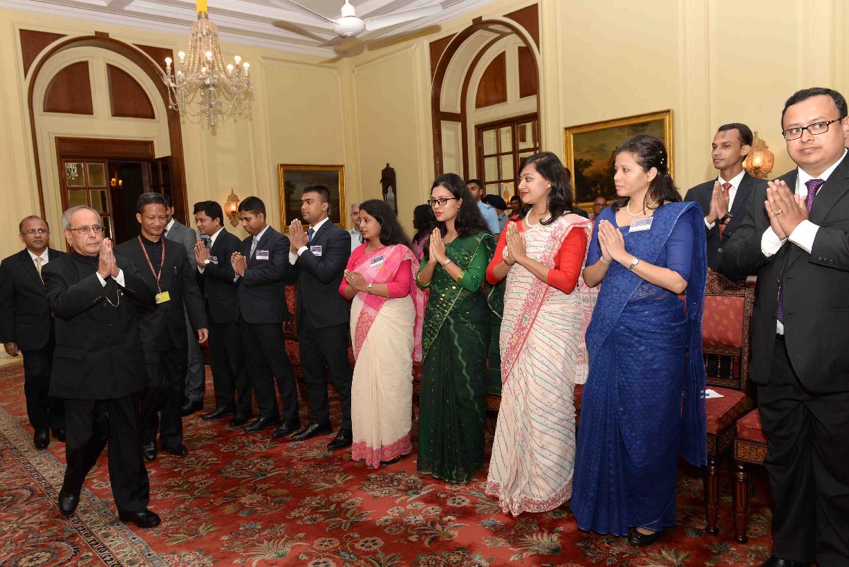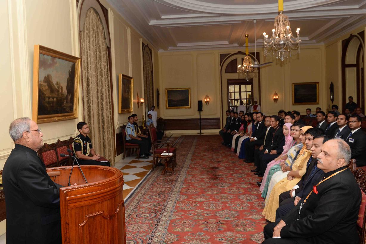 | Caption: | The President of India, Shri Pranab Mukherjee interacting with the Officer Trainees of Bangladesh Foreign Service attending a special course at the Foreign Service Institute, New Delhi, at Rashtrapati Bhavan on July 07, 2017. |
