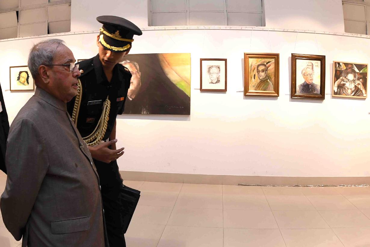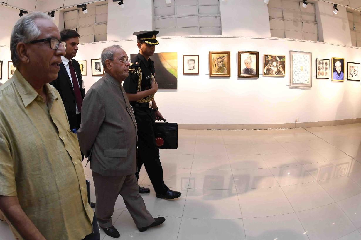 | Caption: | The President of India, Shri Pranab Mukherjee visiting an exhibition, at the inauguration of an exhibition of Paintings & Sculptures and presentation of Coffee Table Book on the Presidentship of India, at Kolkata, in West Bengal on June 30, 2017. |