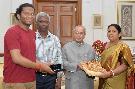 | Caption: | The President of India, Shri Pranab Mukherjee meeting with Dr. Sukumar Hansda, MLA, Jhargram alongwith his wife and son, at Rashtrapati Bhavan on July 13, 2017. |