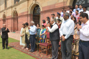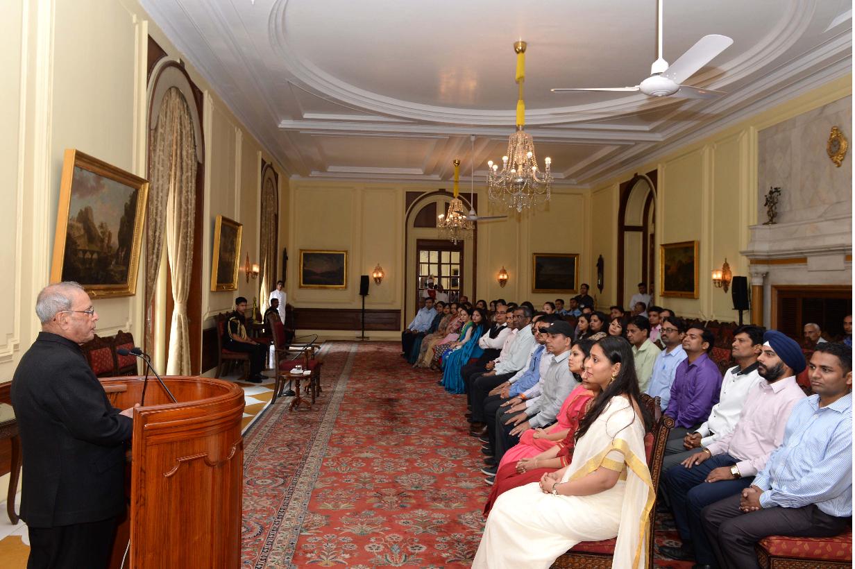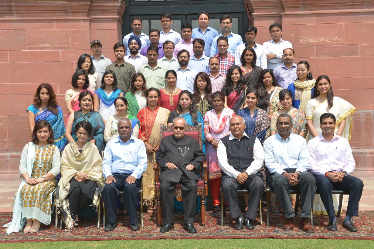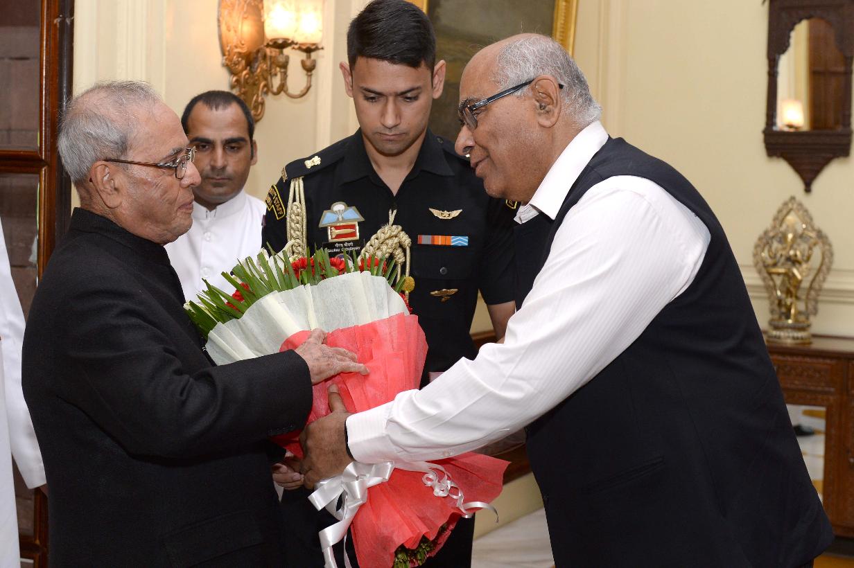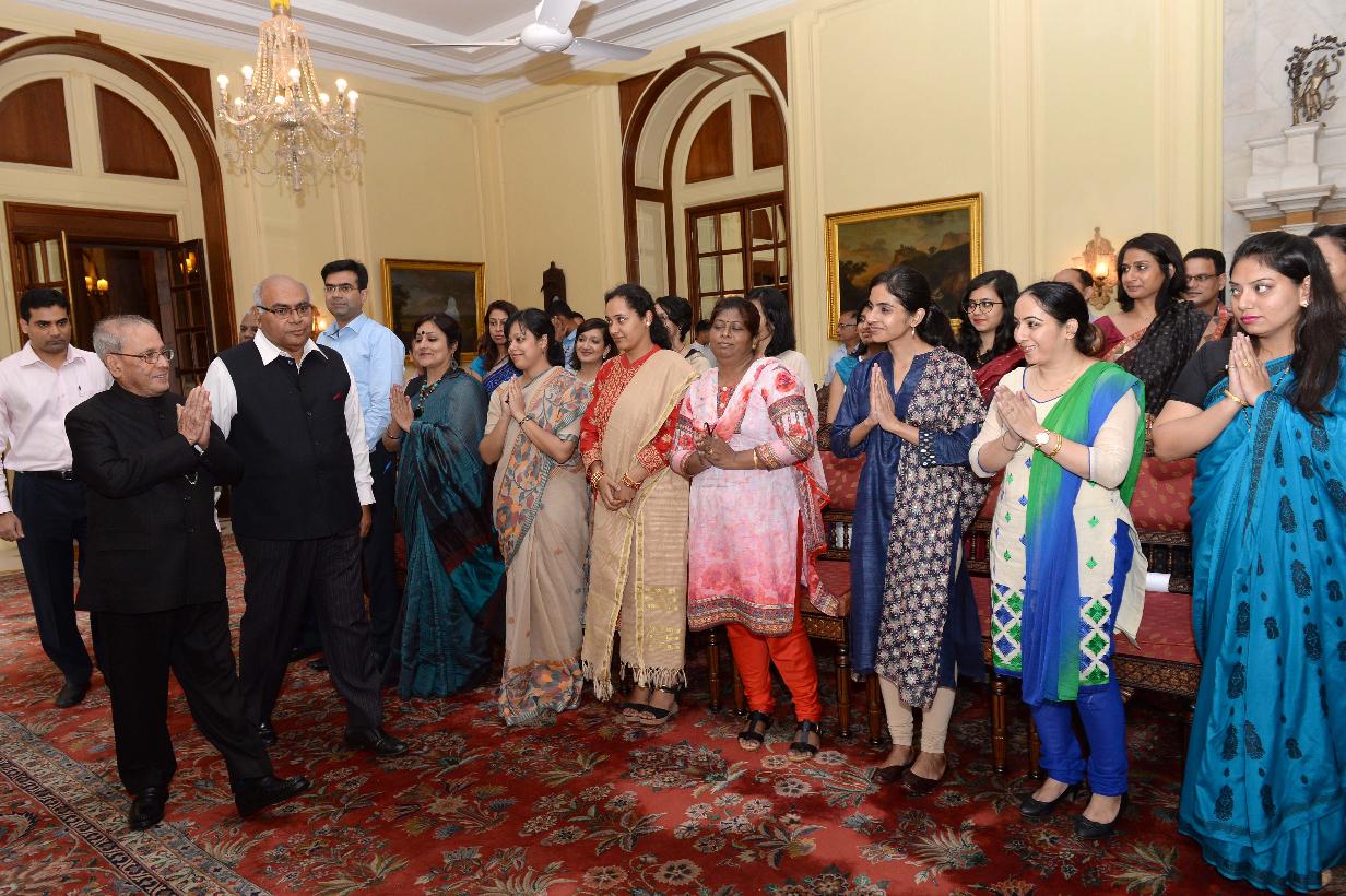 | Caption: | The President of India, Shri Pranab Mukherjee meeting with Shri Kapish Mehra with others, at Rashtrapati Bhavan on July 18, 2017. |