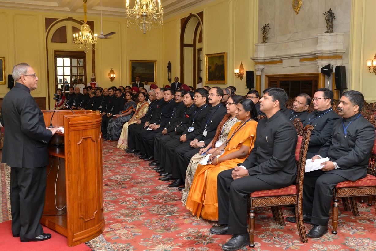| Caption: | The President of India, Shri Pranab Mukherjee meeting with the Officers Trainees attending the 116th Induction Training Programme for State Civil Service Officers, Promoted to the IAS from Lal Bahadur Shastri National Academy of Administration, Mussoorie at Rashtrapati Bhavan in New Delhi on Nov 22, 2014 |