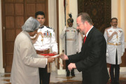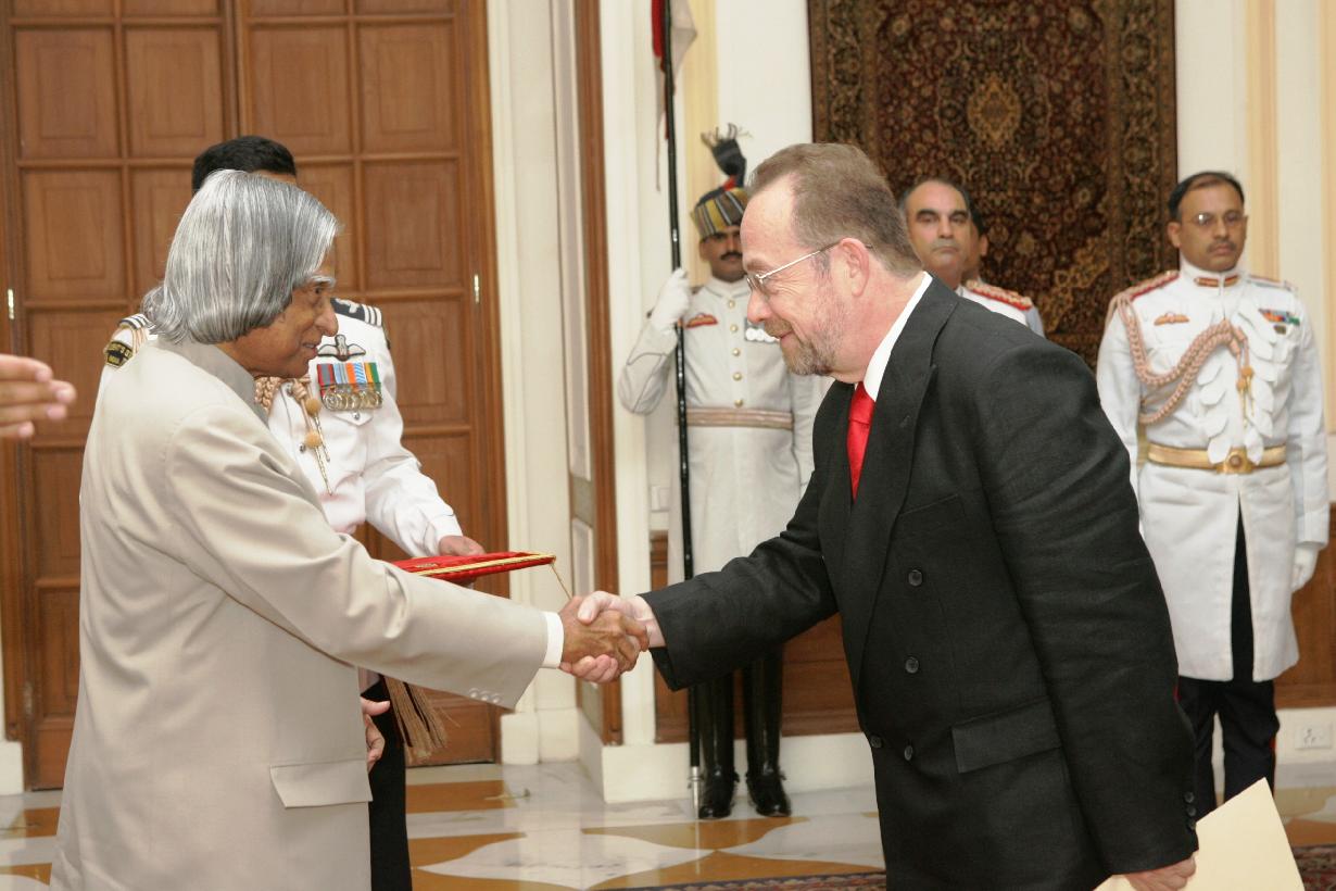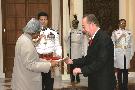 | Caption: | The Ambassador-Designate of the Republic of Ecuador to India, HE MR Carlos Asbad presenting his credentials to the President of India, Dr A P J Abdul Kalam at the Yellow Drawing Room of Rashtrapati Bhavan in New Delhi on June 19, 2006 |