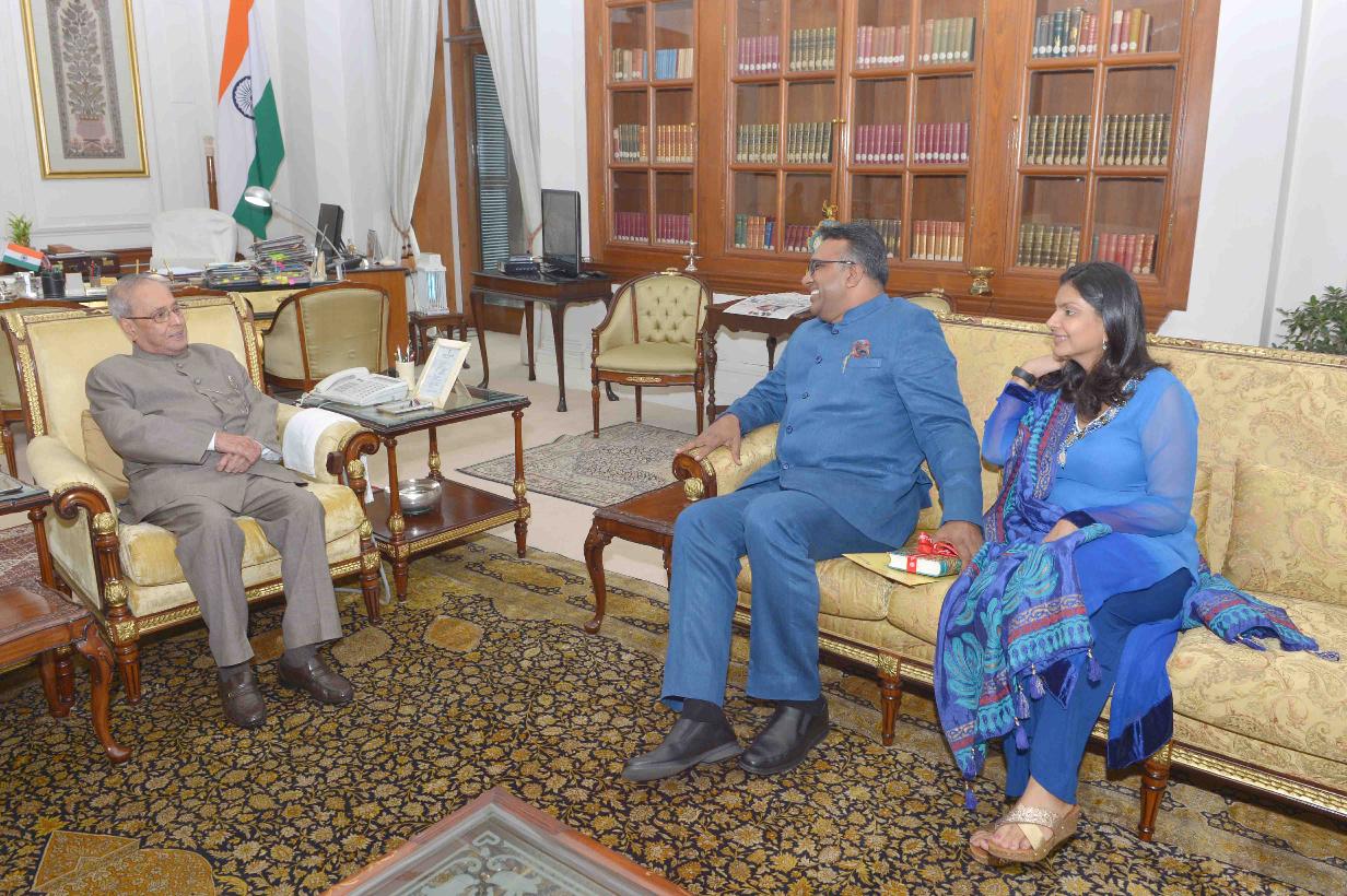 | Caption: | The President of India, Shri Pranab Mukherjee meeting with Prof. C. Rajkumar, Vice Chancellor, O.P. Jindal Global University, at Rashtrapati Bhavan on July 15, 2017. |