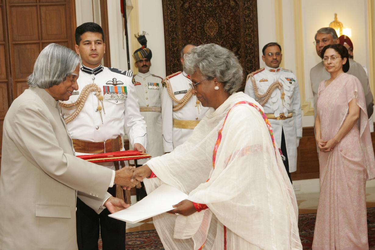 | Caption: | The Ambassador-Designate of Federal Democratic Republic of Ethiopia to India, HE Mrs Genet Zewdie presenting her credentials to the President of India, Dr A P J Abdul Kalam at the Yellow Drawing Room of Rashtrapati Bhavan in New Delhi on June 19, 2006 |