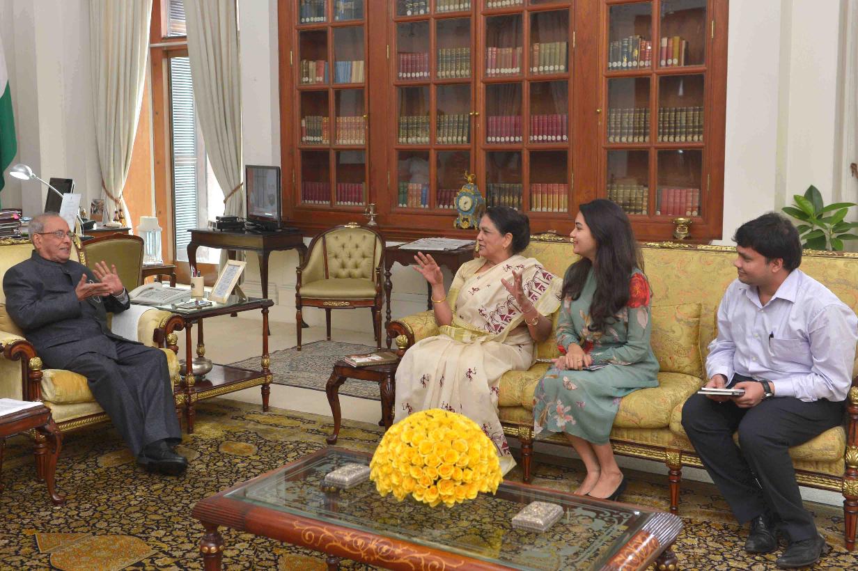 | Caption: | The President of India, Shri Pranab Mukherjee meeting with Smt. Justice (Retd) Gyan Sudha Mishra, former Judge, Supreme Court of India alongwith her daughter Ms. Unnati and nephew Shri Jaideep, at Rashtrapati Bhavan on July 20, 2017. |