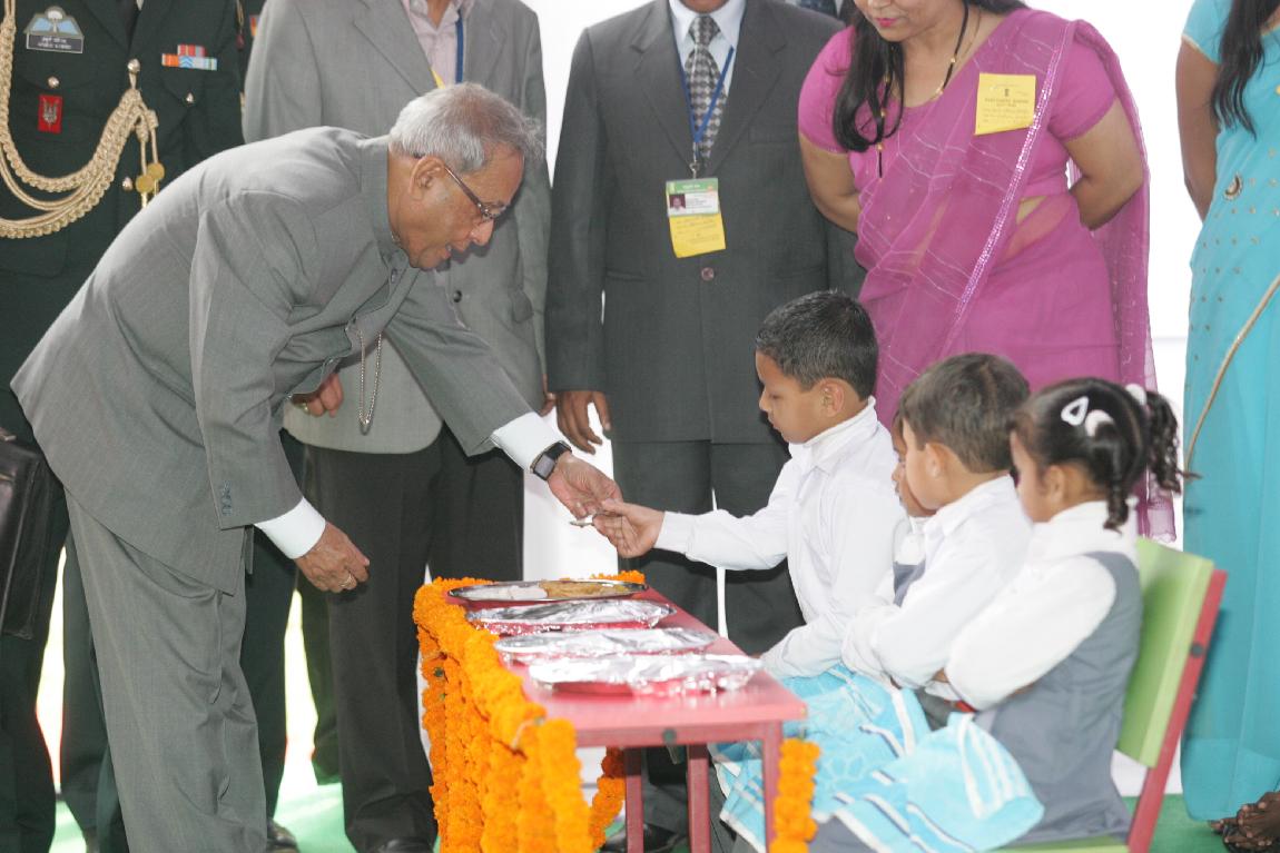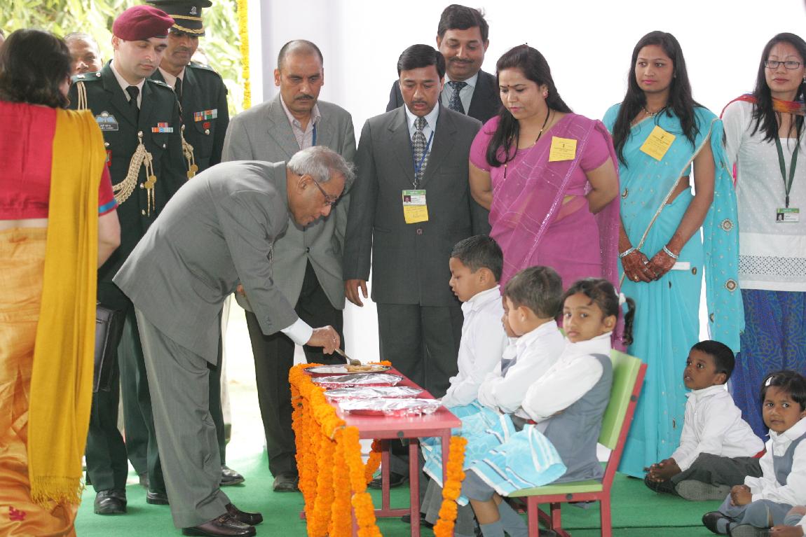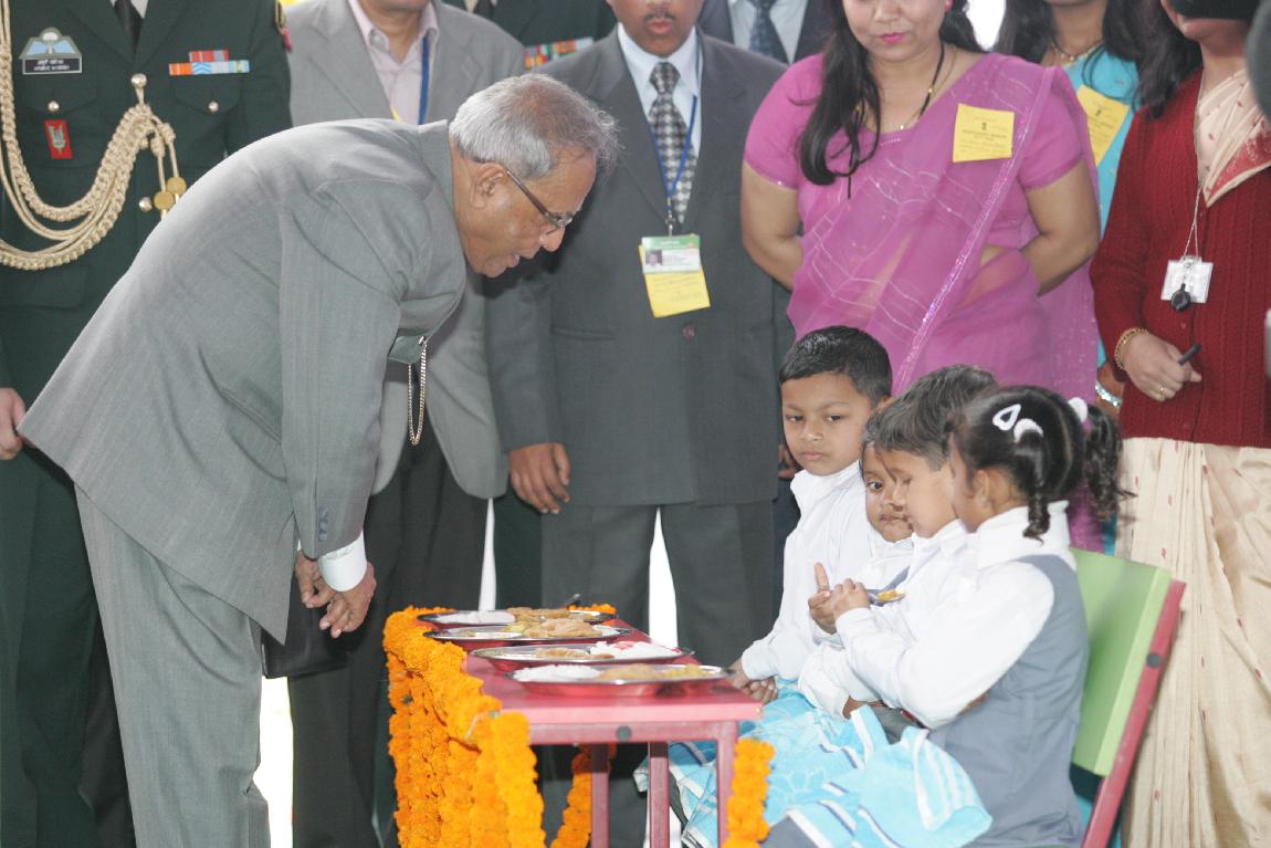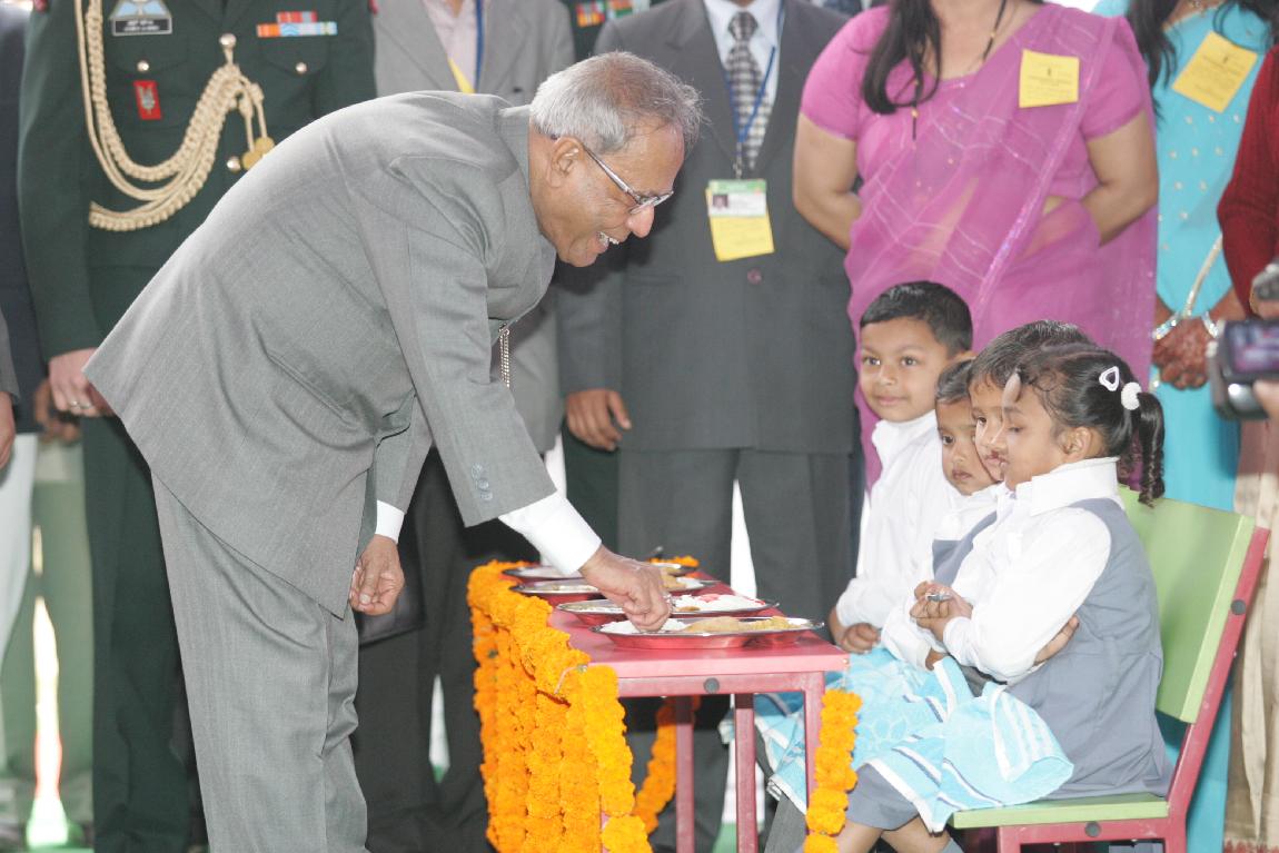 | Caption: | The President of India, Shri Pranab Mukherjee Launching Mid-day Meal Scheme for Nursery and KG Classes Childrens at Kalyan Kendra of Rashtrapati Bhavan in New Delhi on February 15, 2013 |