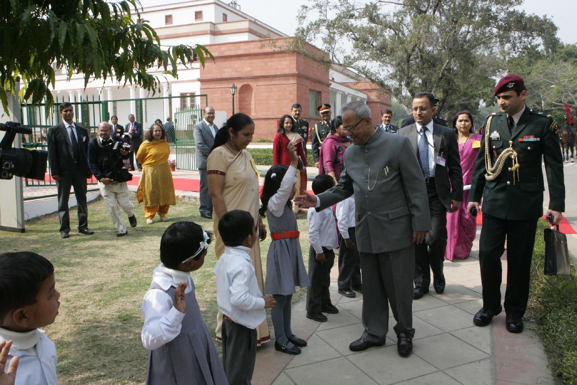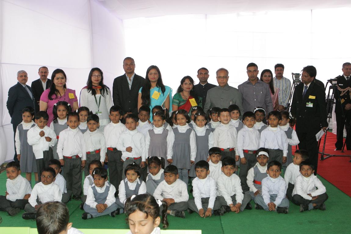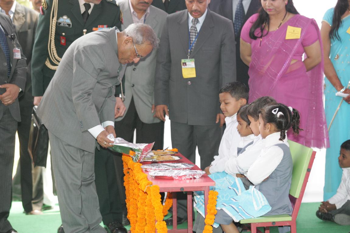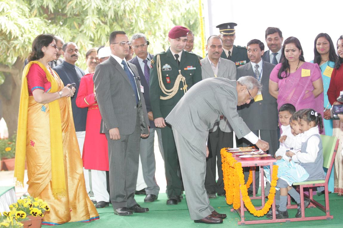 | Caption: | The President of India, Shri Pranab Mukherjee Launching Mid-day Meal Scheme for Nursery and KG Classes Childrens at Kalyan Kendra of Rashtrapati Bhavan in New Delhi on February 15, 2013 |