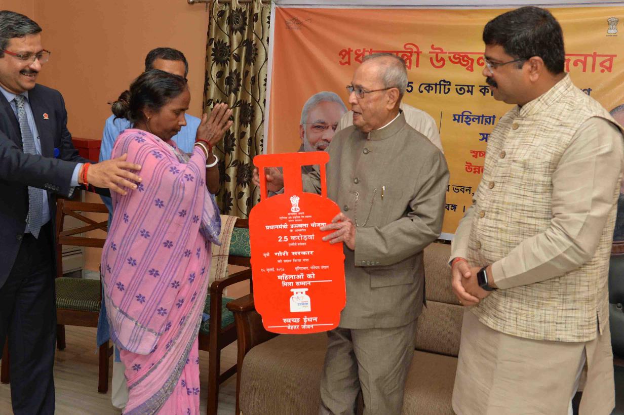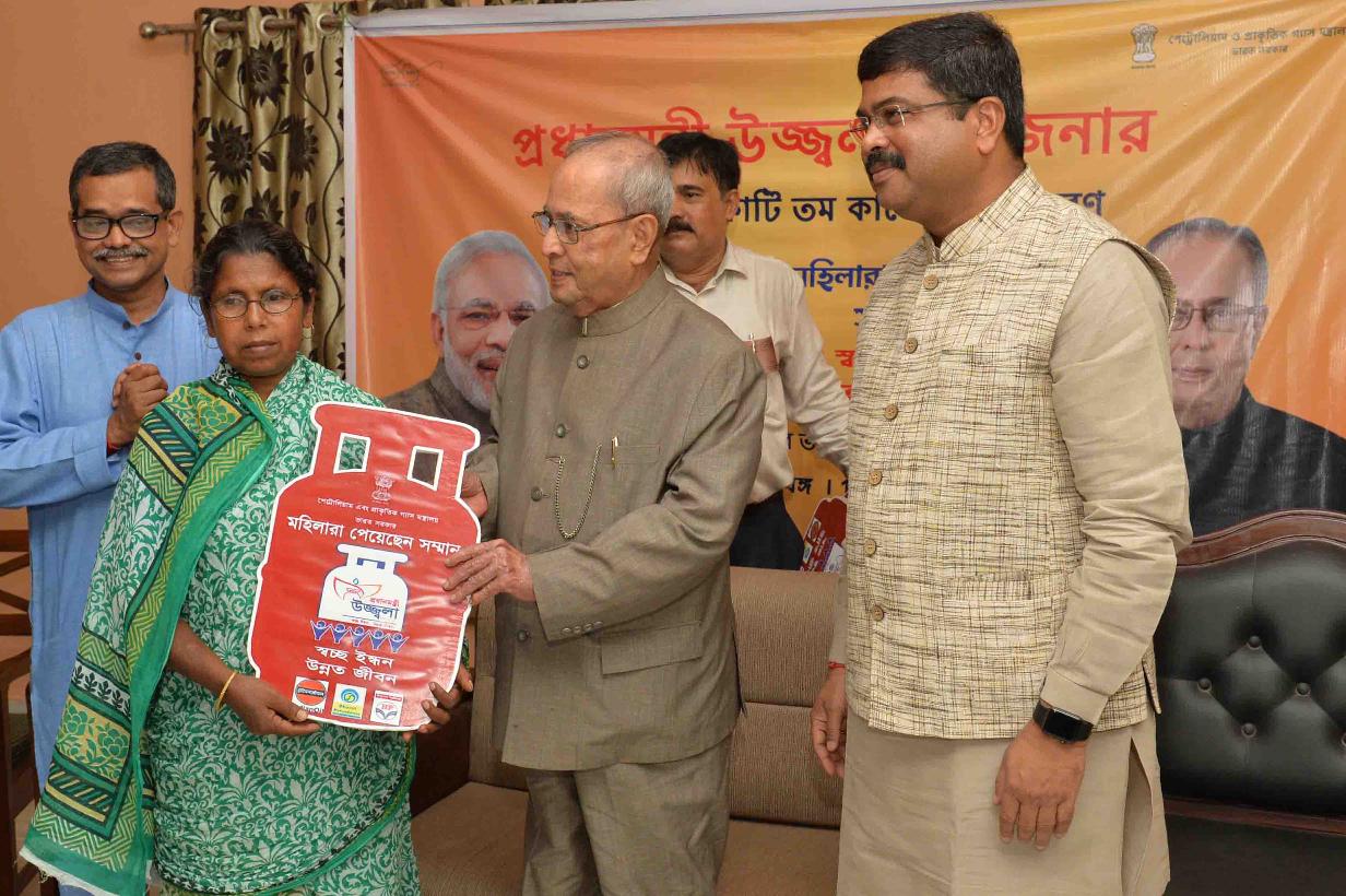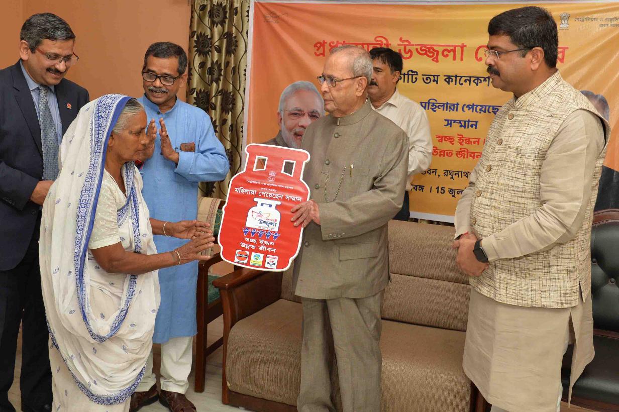 | Caption: | The President of India, Shri Pranab Mukherjee distributing the free LPG connections to women, under the Pradhan Mantri Ujjwala Yojana (PMUY), at Jangipur, Murshidabad, in West Bengal on July 15, 2017. |