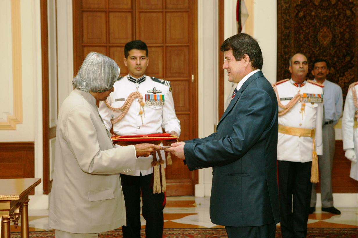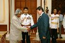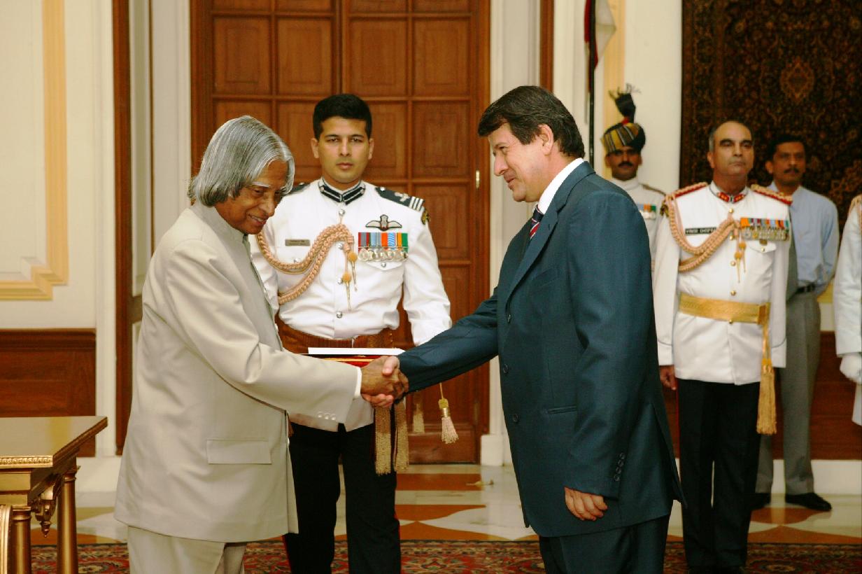| Caption: | The Ambassador-Designate of the Republic of Tajikistan, HE Mr Salohoddin Nasriddinov presenting his credentials to the President of India, Dr A P J Abdul Kalam at the Yellow Drawing Room of Rashtrapati Bhavan in New Delhi on June 19, 2006 |