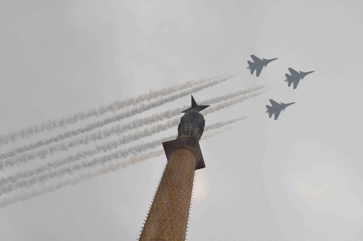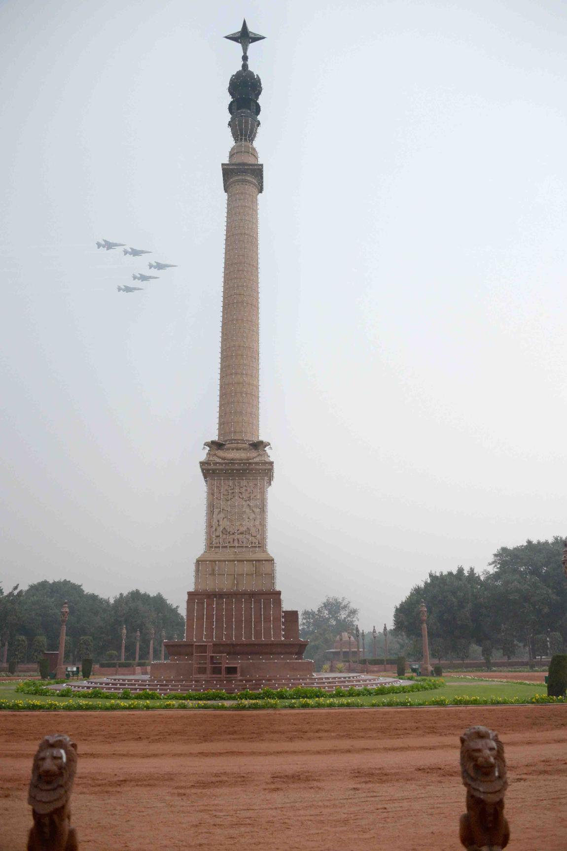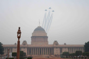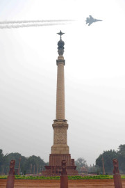 | Caption: | Air Force planes flying past Rashtrapati Bhavan & Jaipur Column on the occasion of the 68th Republic Day Celebrations on January 26, 2017 . |
