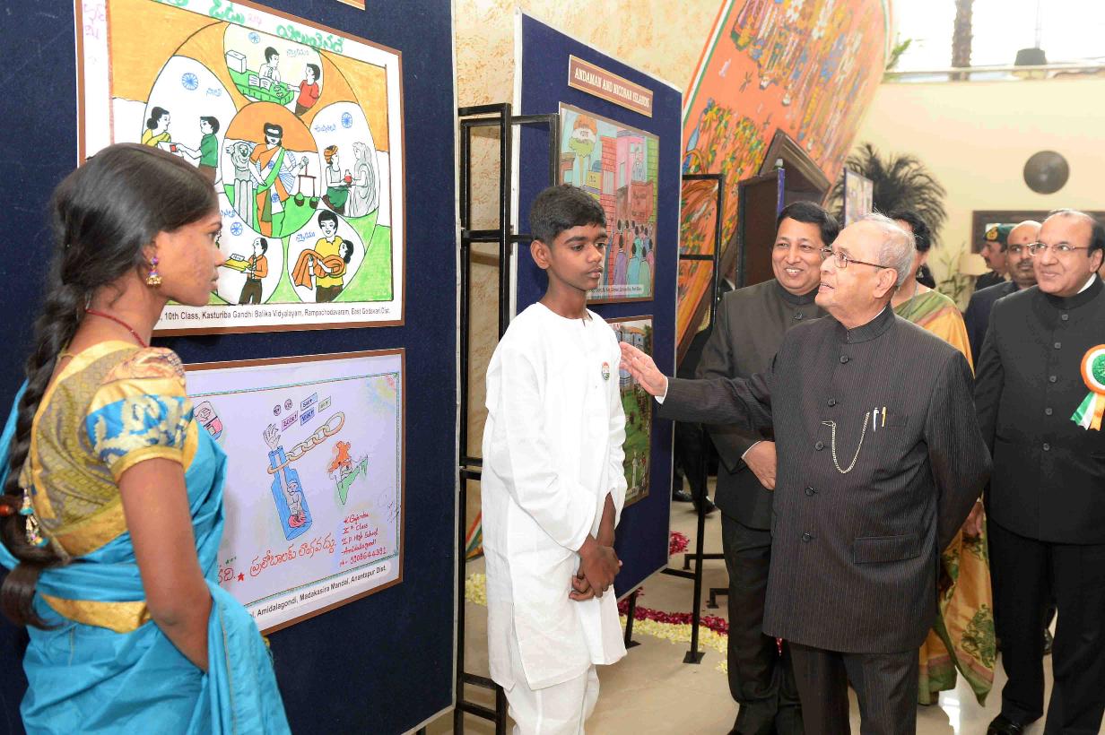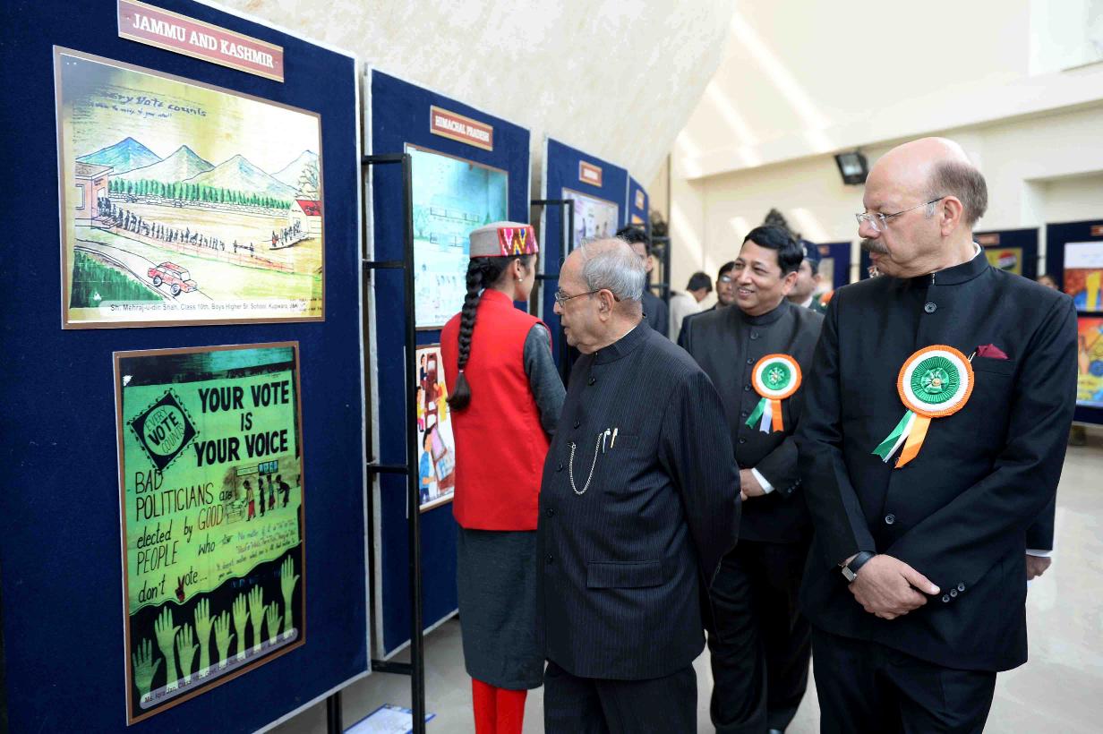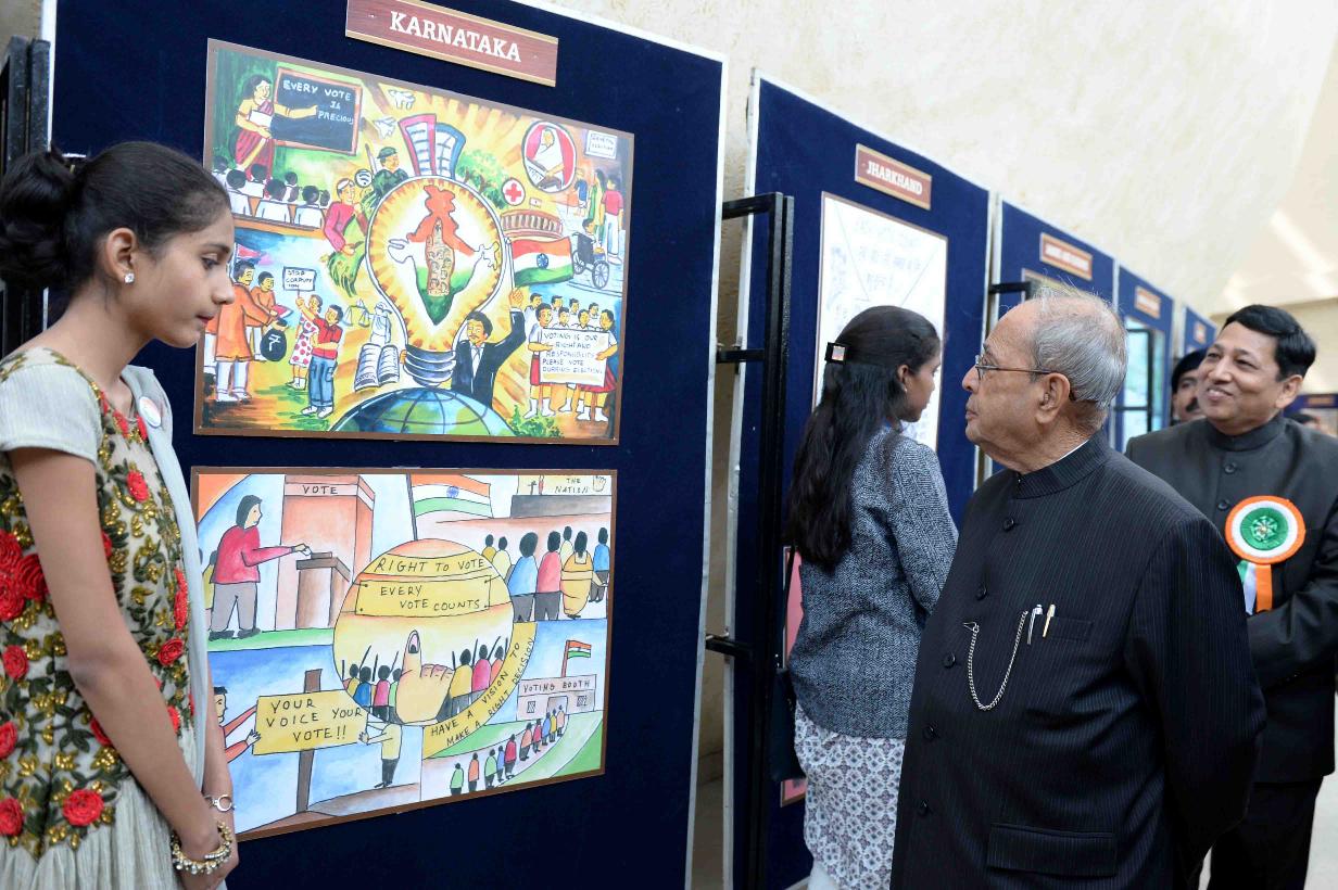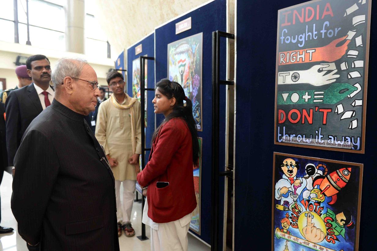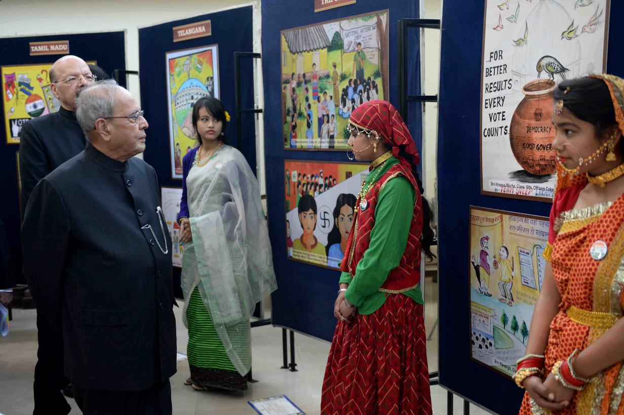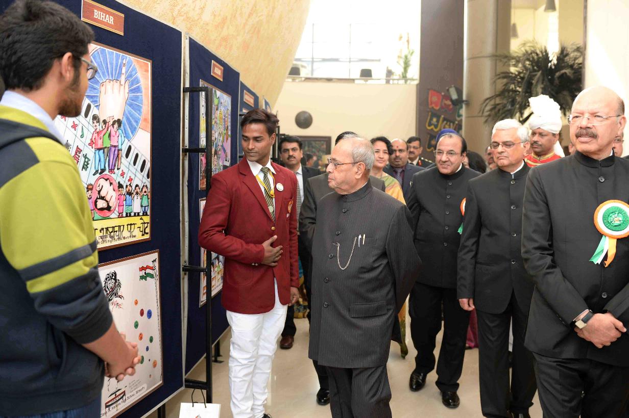 | Caption: | The President of India, Shri Pranab Mukherjee visiting an exhibition, at the National Voters' Day Celebrations, organized by the Election Commission of India, in New Delhi on January 25, 2017. |