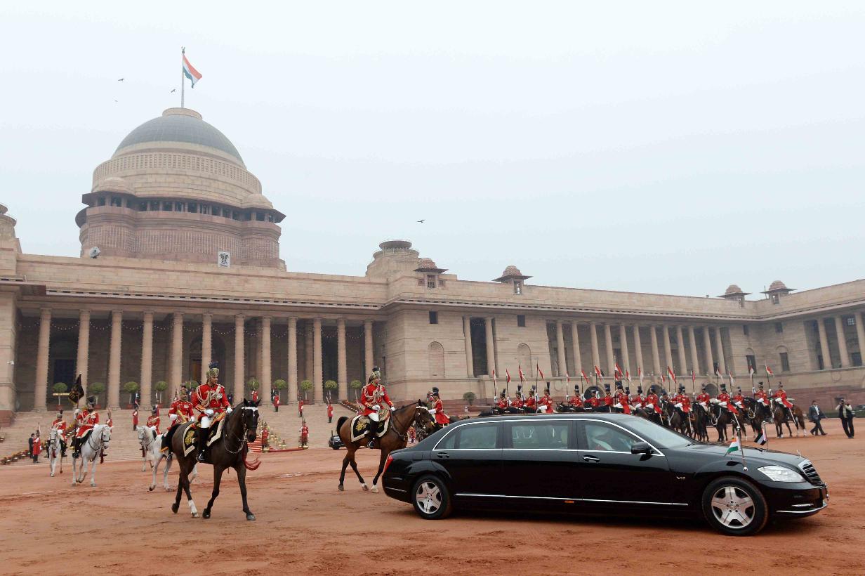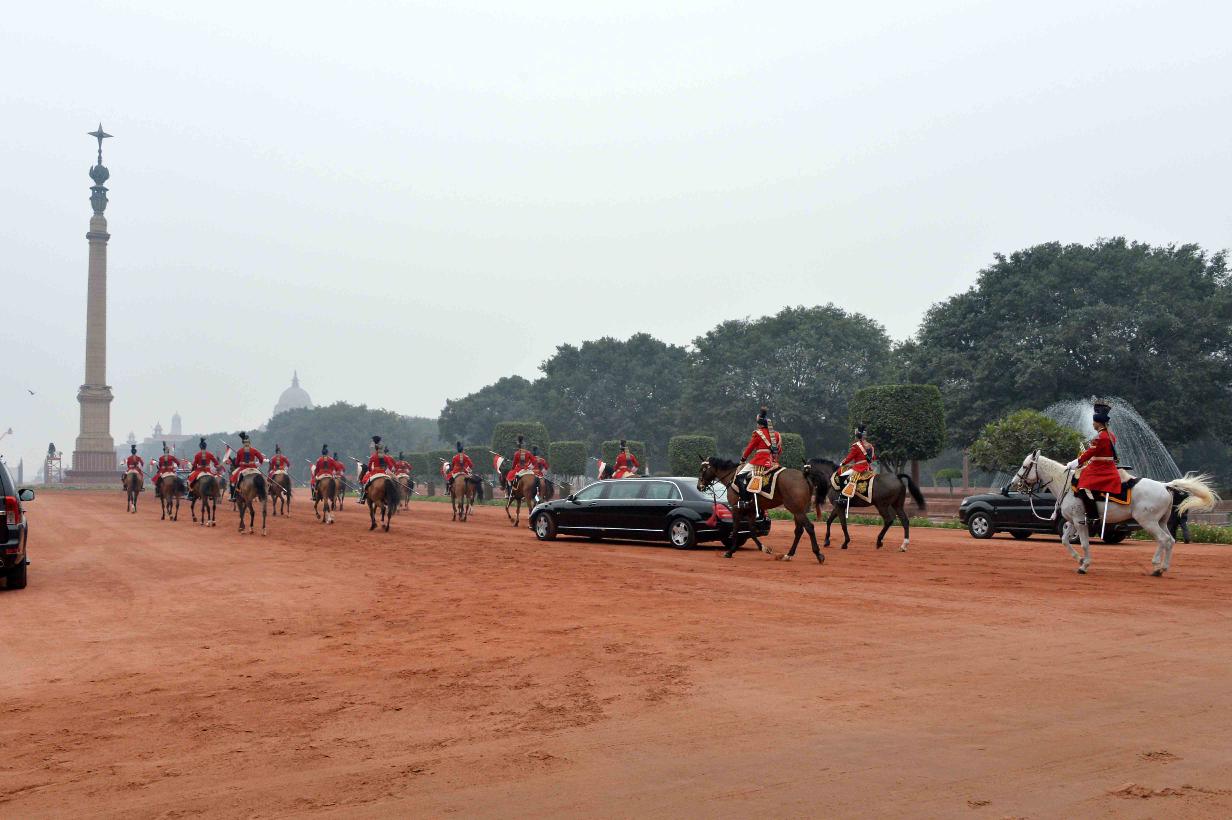 | Caption: | The President of India Shri Pranab Mukherjee taking the National Salute during the departure at Forecourt of Rashtrapati Bhavan for witnessing Republic Day Parade at Rajpath on January 26, 2017. |