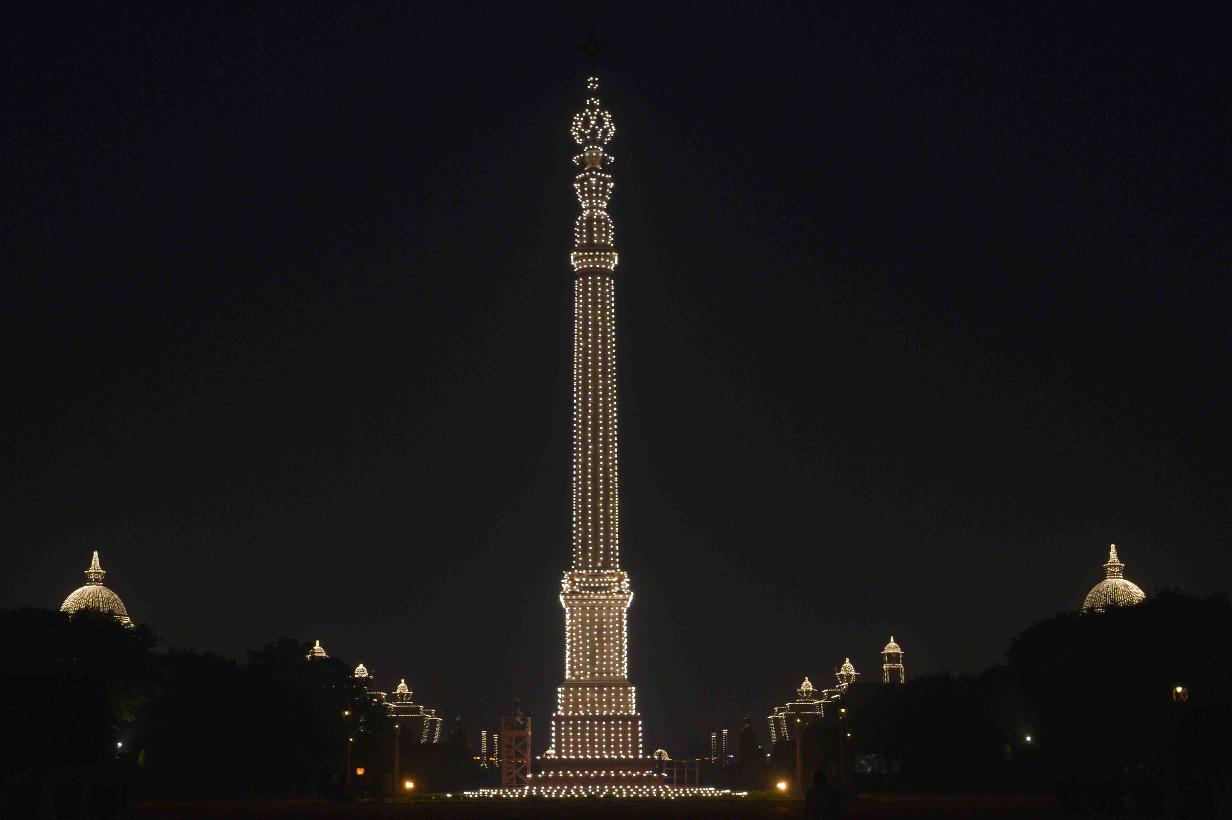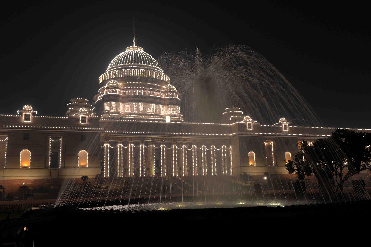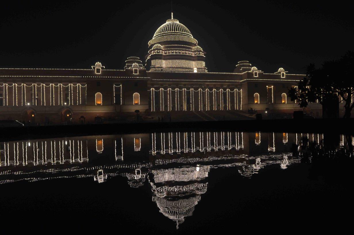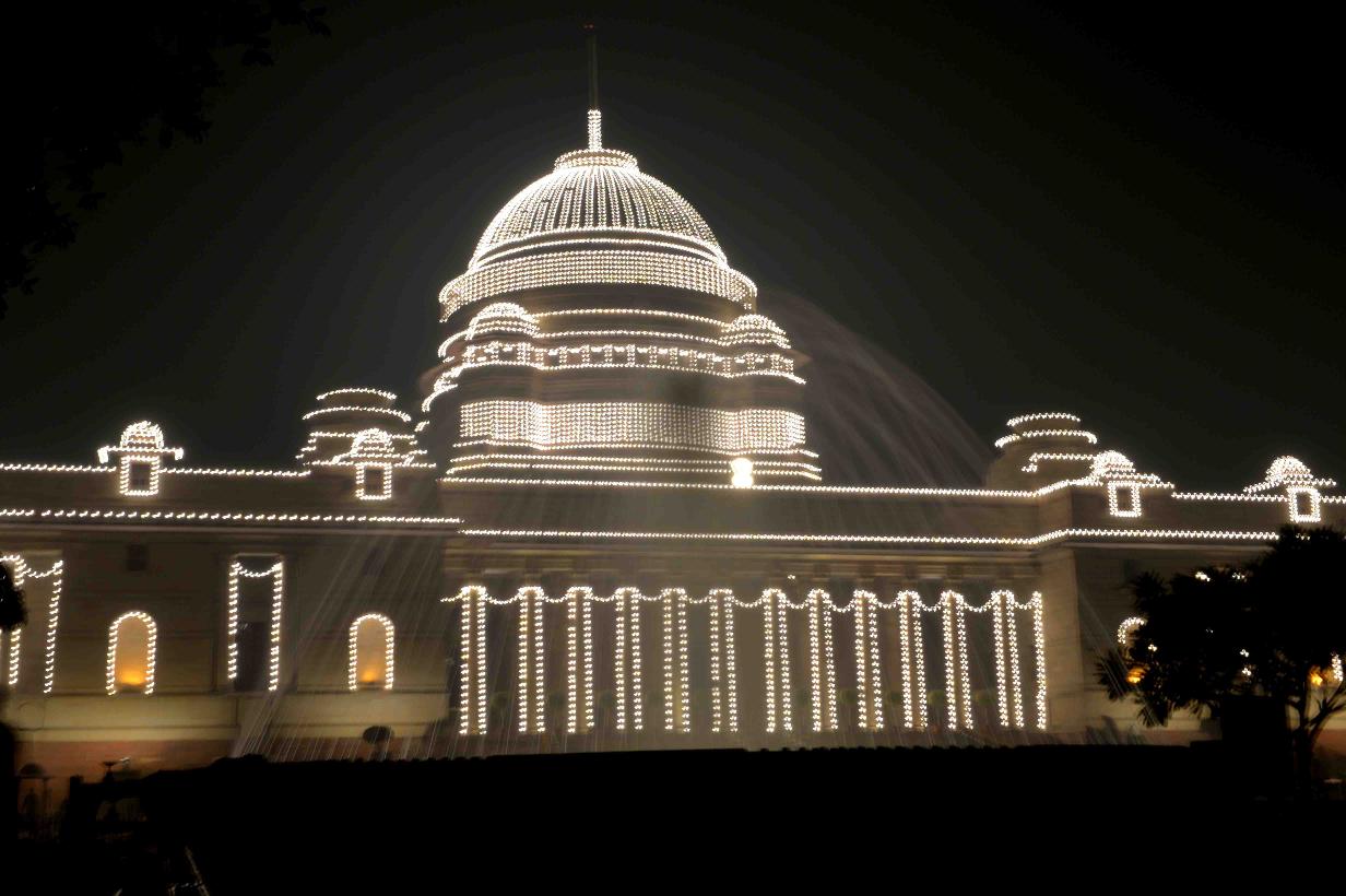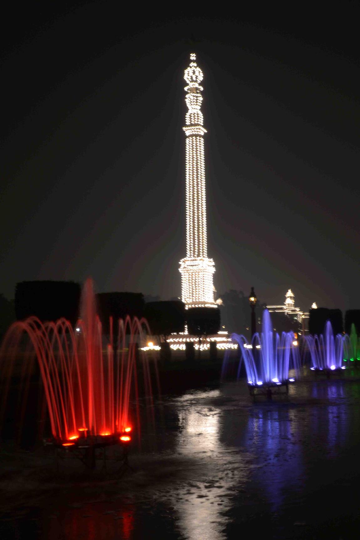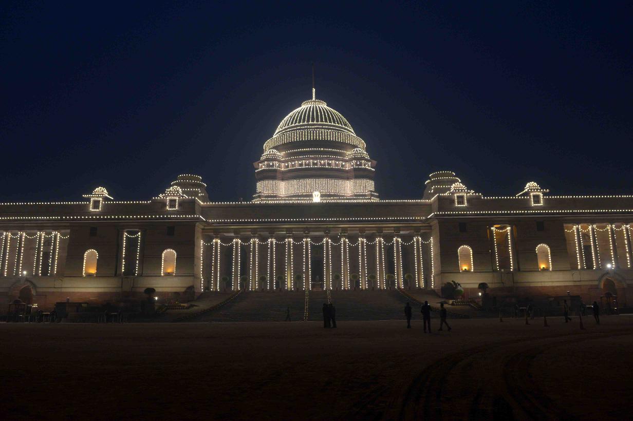 | Caption: | View of illuminated Rashtrapati Bhavan & Jaipur Column on the occasion of the 68th Republic Day Celebrations on January 26, 2017 . |