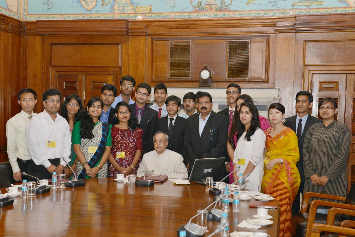 | Caption: | The President of India, Shri Pranab Mukherjee meeting the first batch of NITs Scholars attending In-Residence Programme, at Rashtrapati Bhavan, in New Delhi on April 15, 2015. |