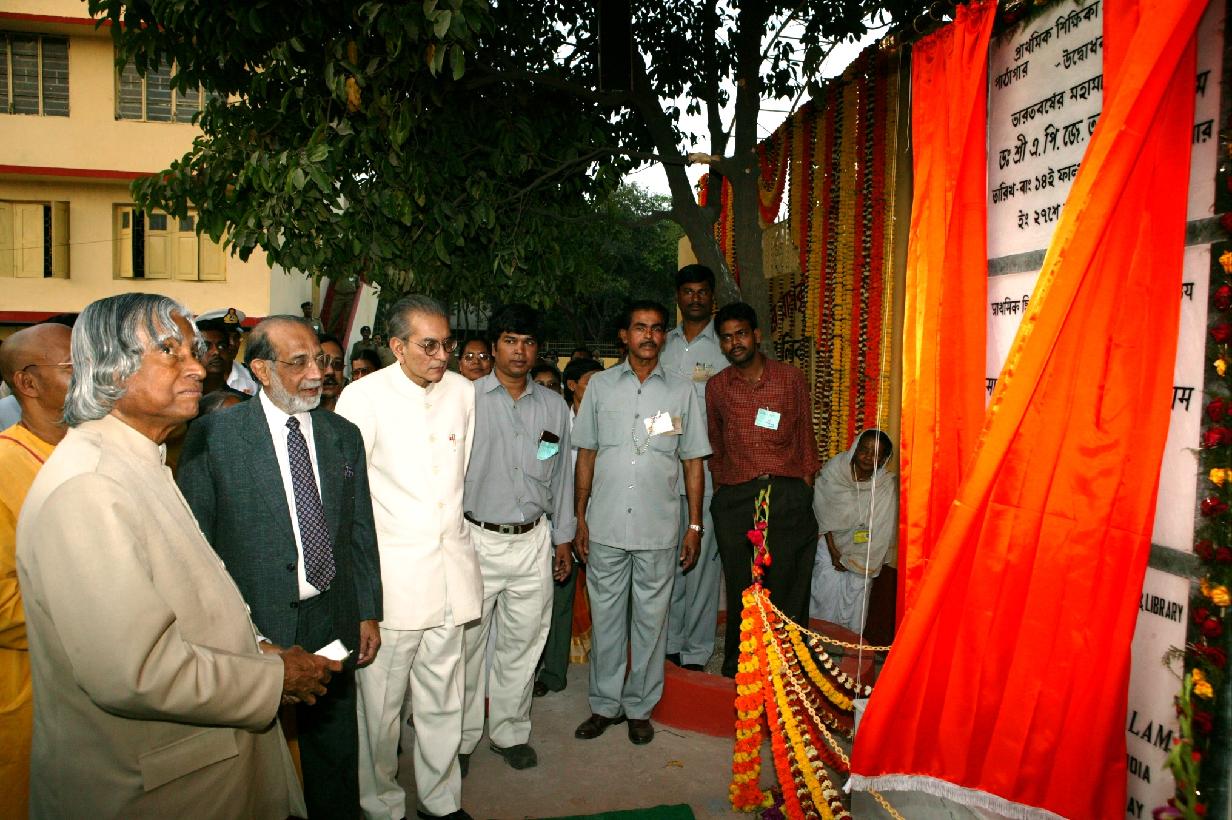 | Caption: | The President of India, Dr A P J Abdul Kalam inaugurating the Residential Complex Library and Teachers Training Institute Building during visit to Dakshineswar Ramkrishna Sangha Adyapeath at Kolkata in West Bengal on Feb 27, 2004 |