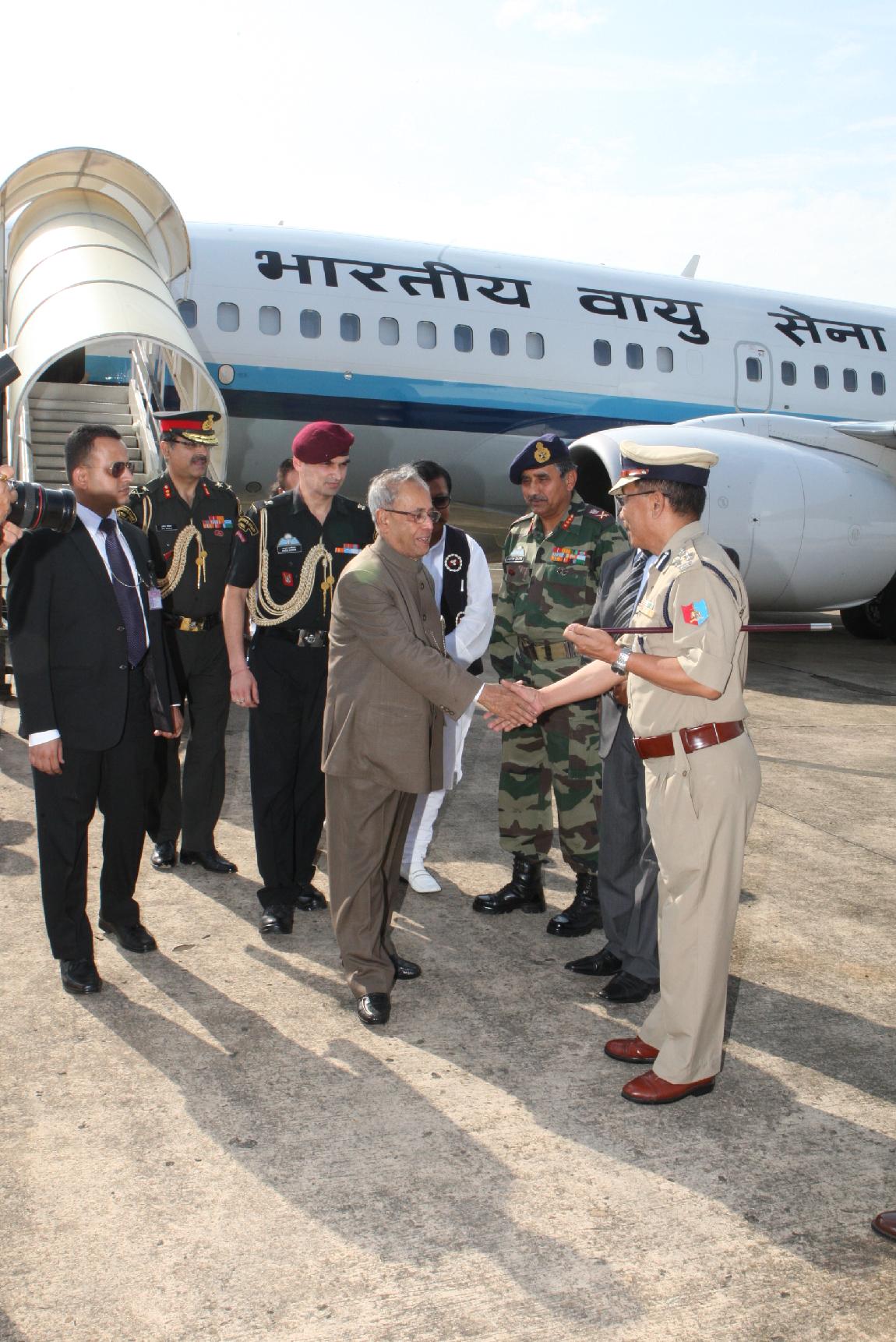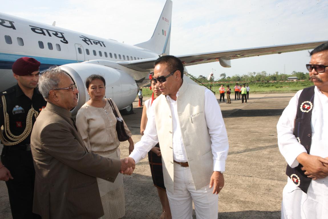 The President of India, Shri Pranab Mukherjee Arrival at Dimapur Airport on 14 May 2013