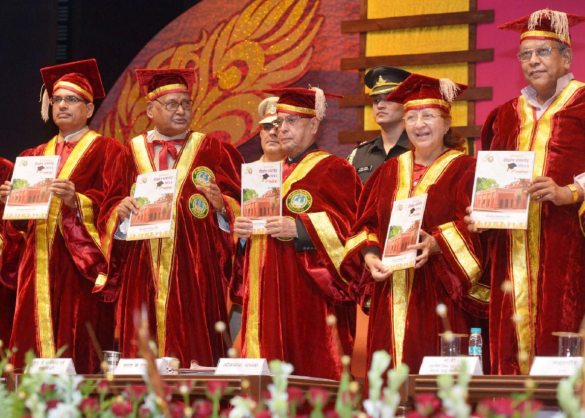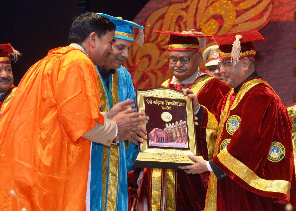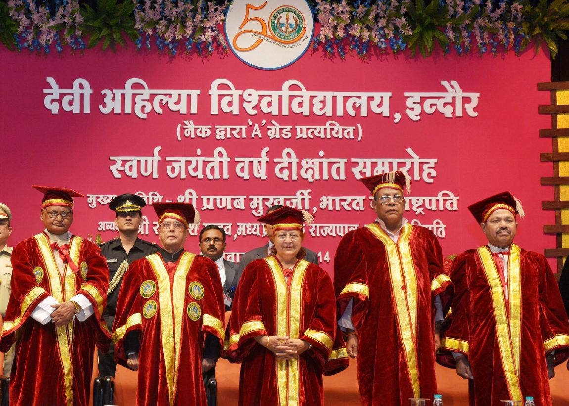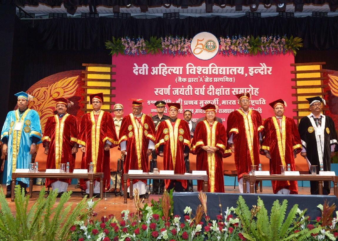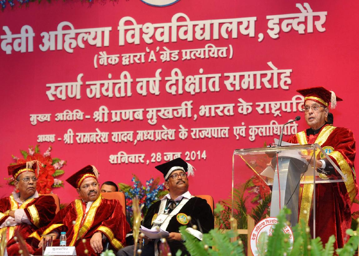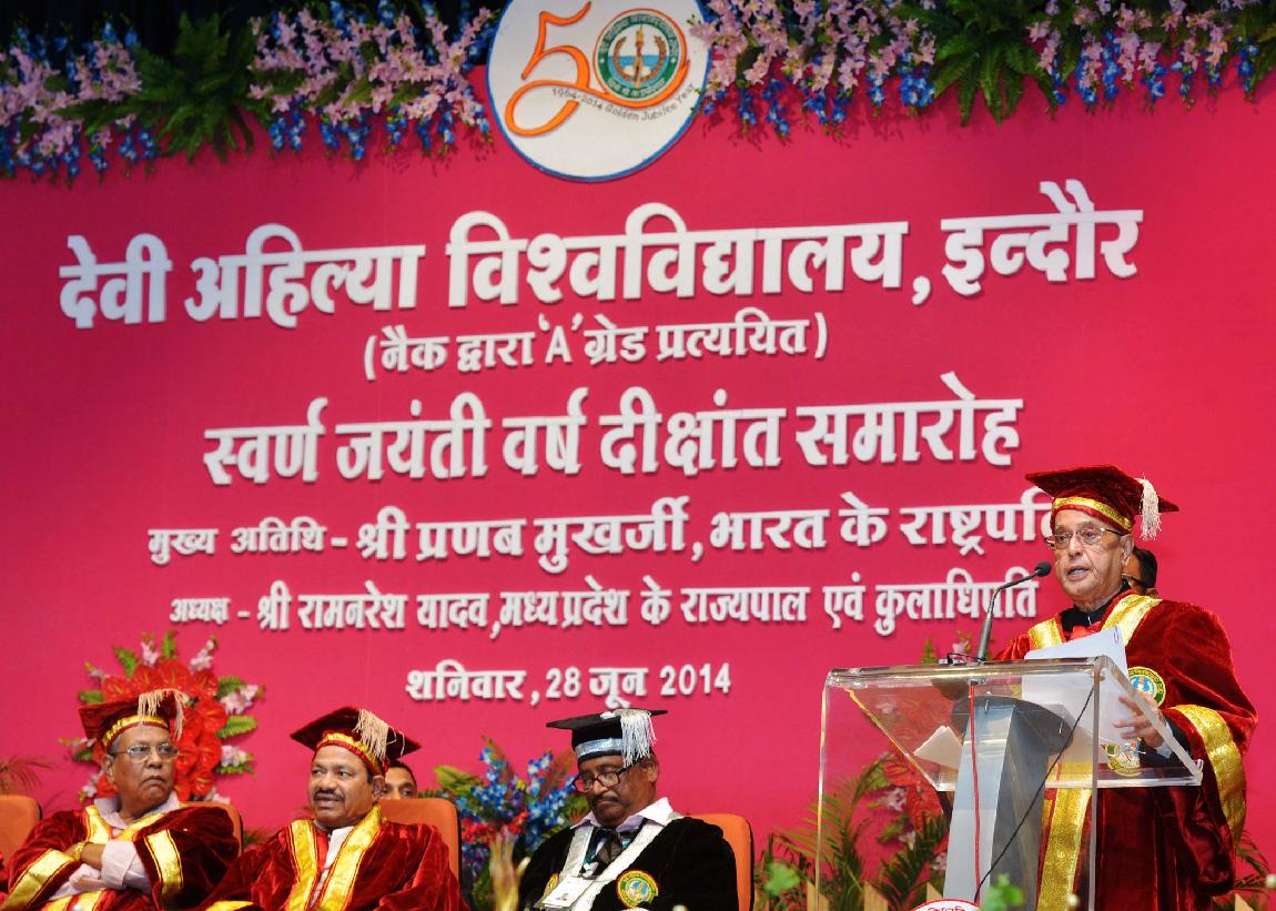 | Caption: | The President of India, Shri Pranab Mukherjee gracing the Convocation Ceremony being organised during the Golden Jubilee Year of the Devi Ahilya Vishwavidayalaya at Indore in Madhya Pradesh on June 28, 2014 |