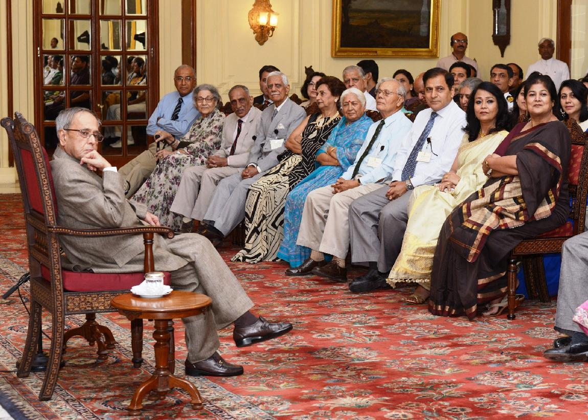| Caption: | The President of India, Shri Pranab Mukherjee interacting with the Reunion of Former Aides-De-Camp (ADC) to the President of India at Rashtrapati Bhavan in New Delhi on May 04, 2014 |