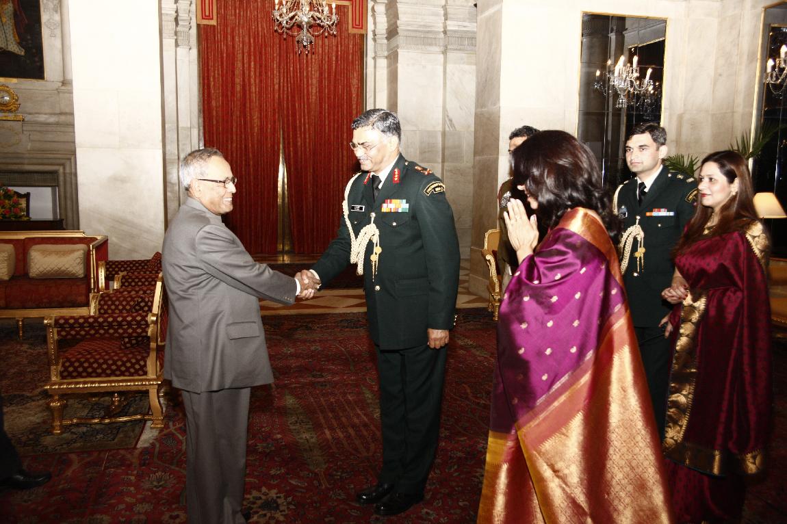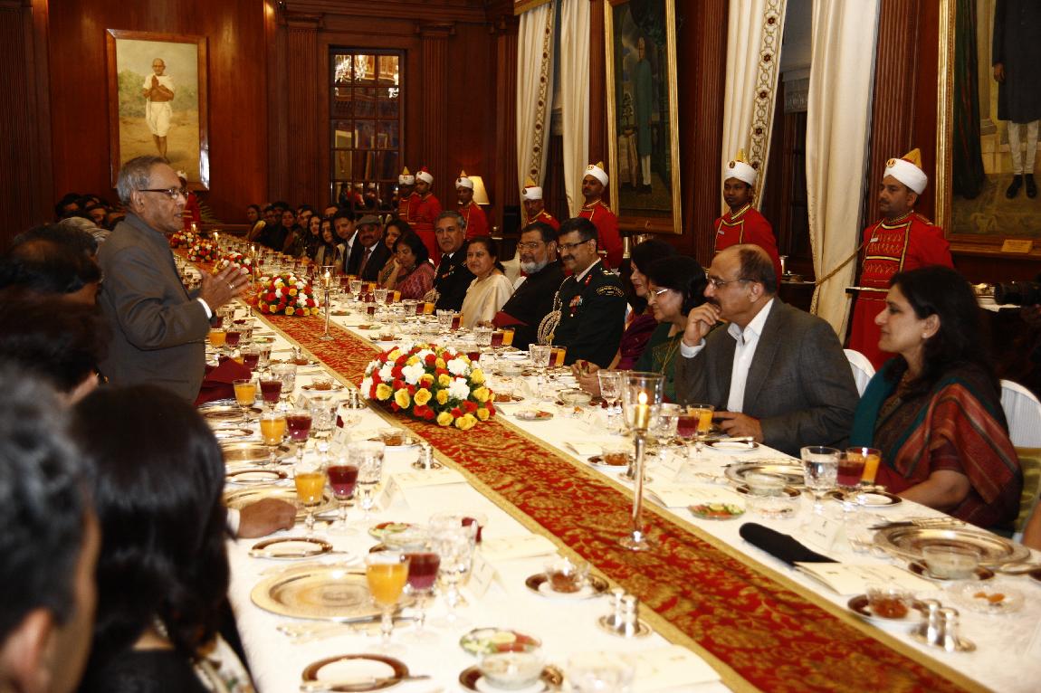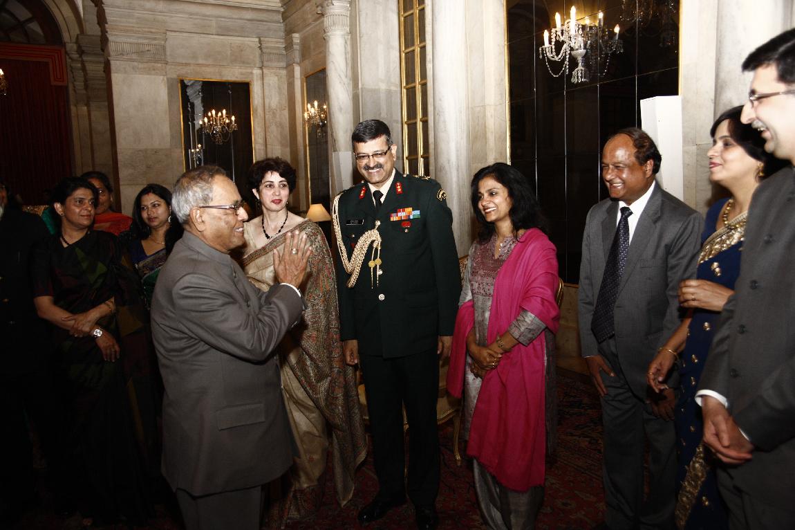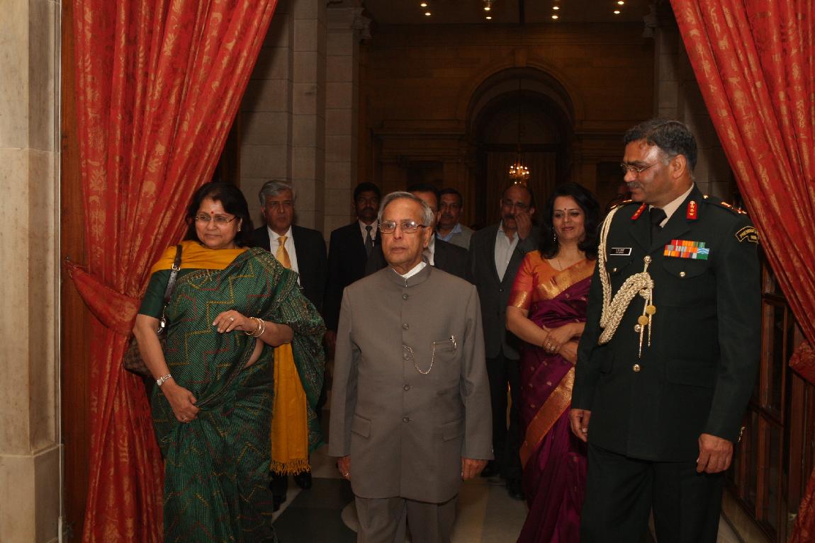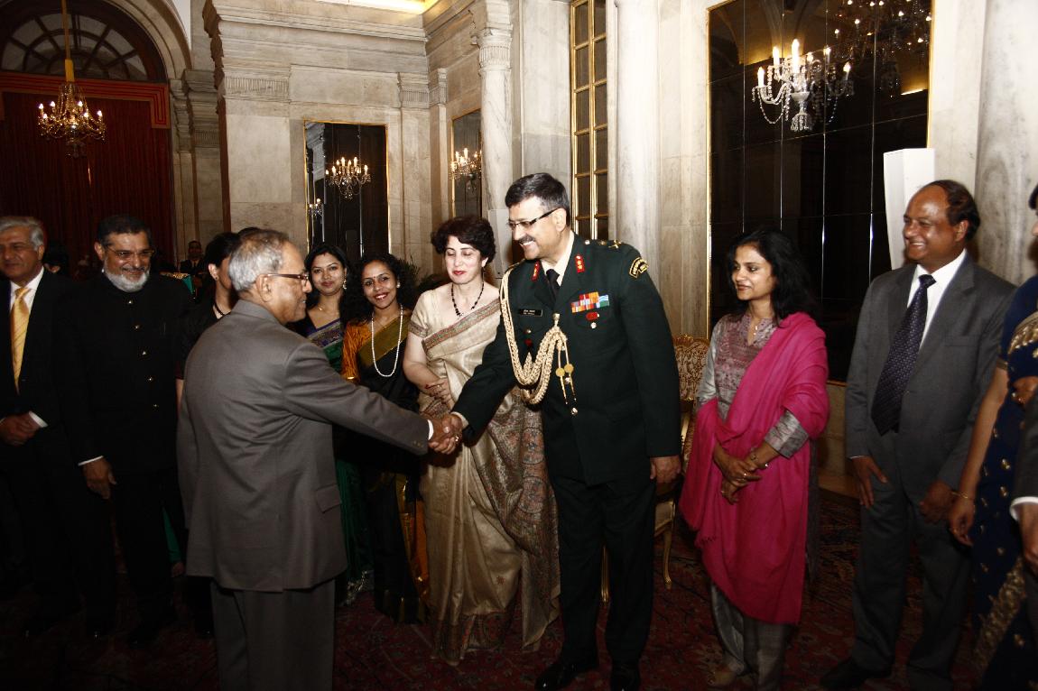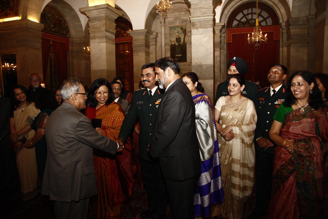 | Caption: | The President of India, Shri Pranab Mukherjee Attending Farewell Dinner to Lt Gen A K Bakshi on Feb 27, 2013 |