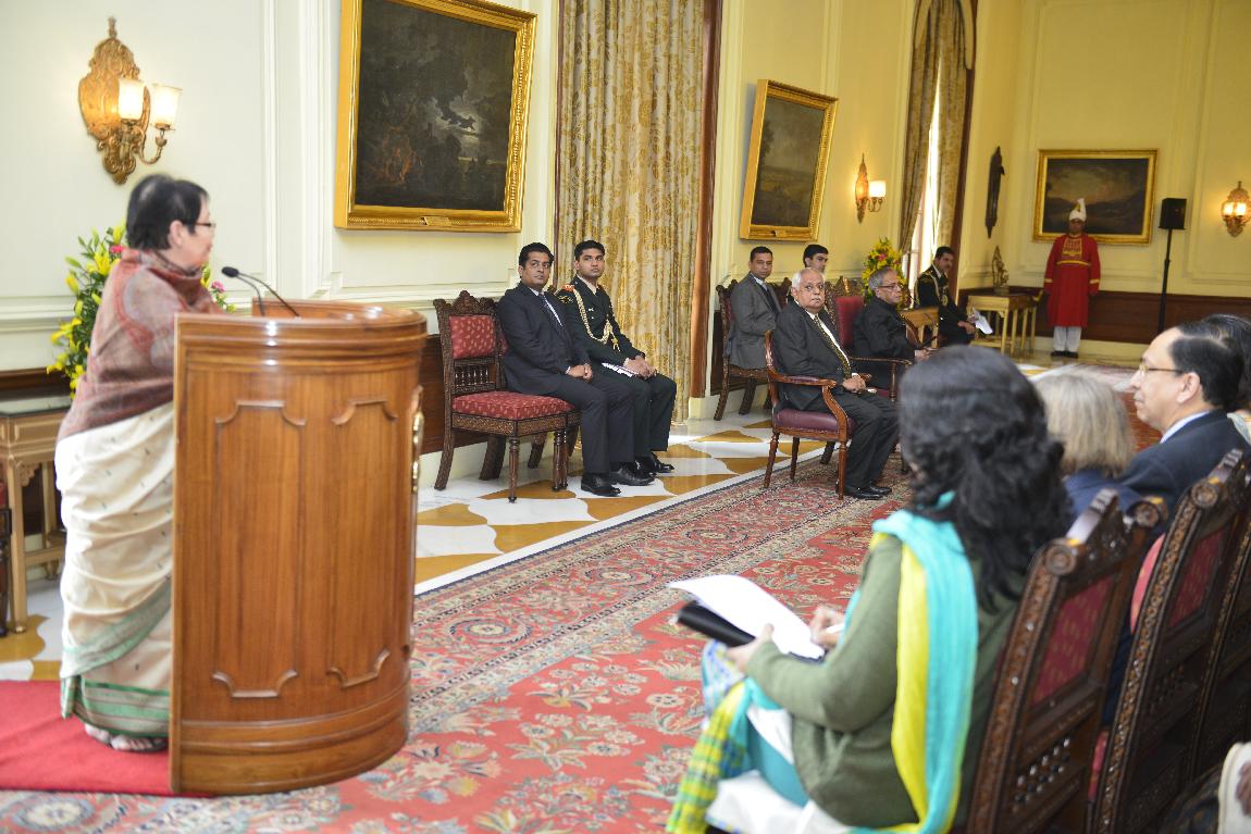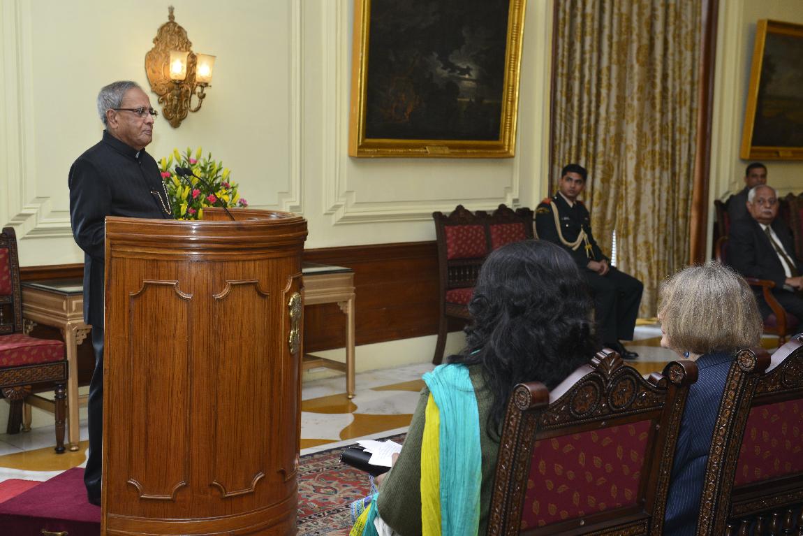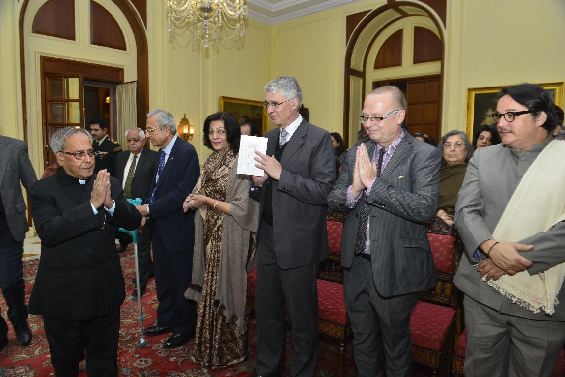 | Caption: | The President of India, Shri Pranab Mukherjee Receiving "Netaji Subhas Chandra Bose and Germany" Book by Professor Anita B Pfaff on Feb 06, 2013 |