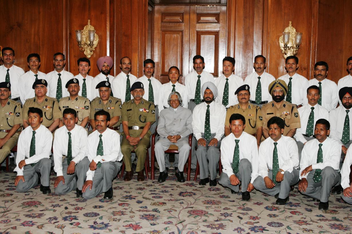 | Caption: | The Members of Third Mount Everest Expedition of Indo-Tibetan Border Police -ITBP calling on the President of India, Dr A P J Abdul Kalam at the Committee Room of Rashtrapati Bhavan in New Delhi on June 22, 2006 |