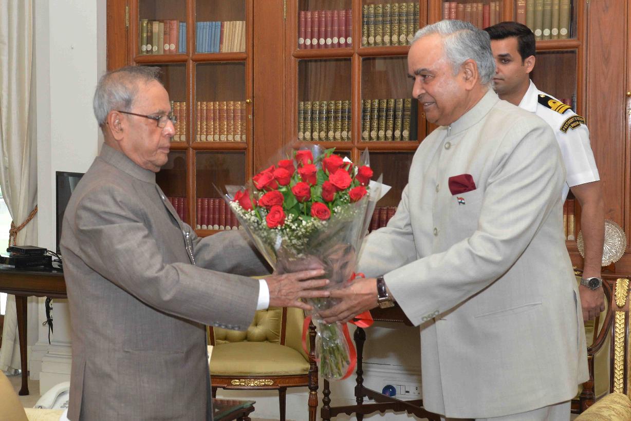 | Caption: | The Governor of Mizoram, Lt. Gen. (Retd) Nirbhay Sharma calling on the President of India, Shri Pranab Mukherjee, at Rashtrapati Bhavan, in New Delhi on July 09, 2015. |