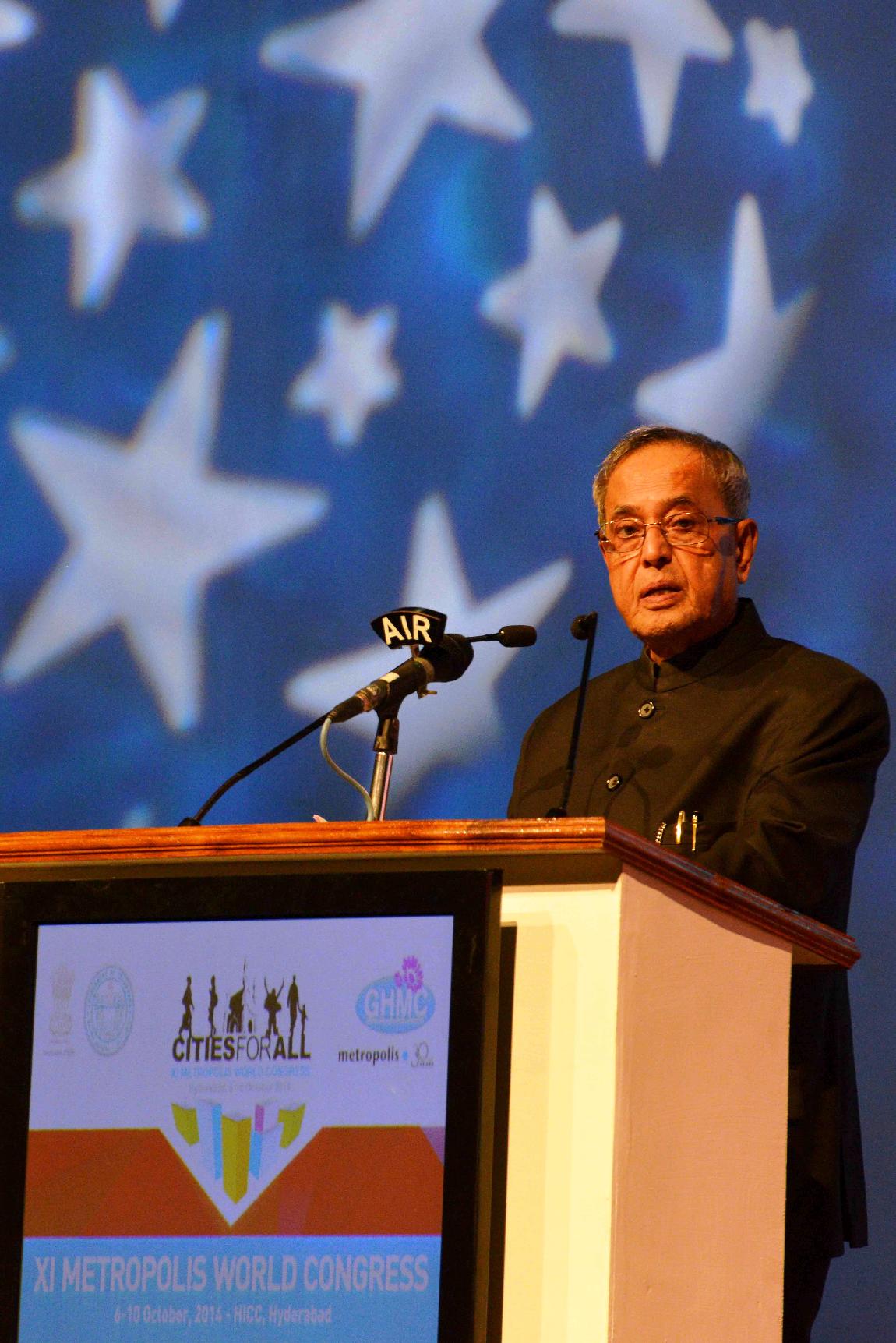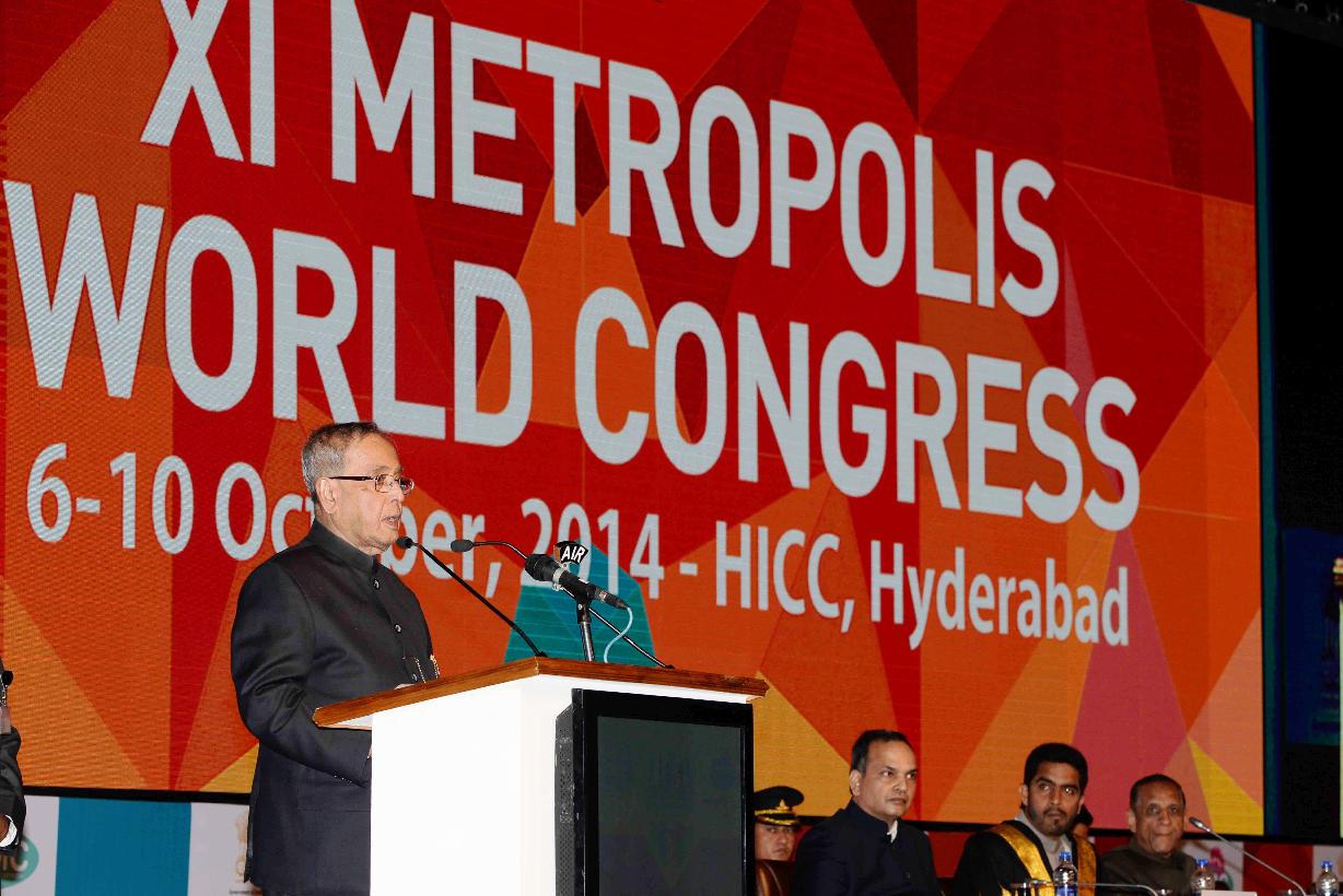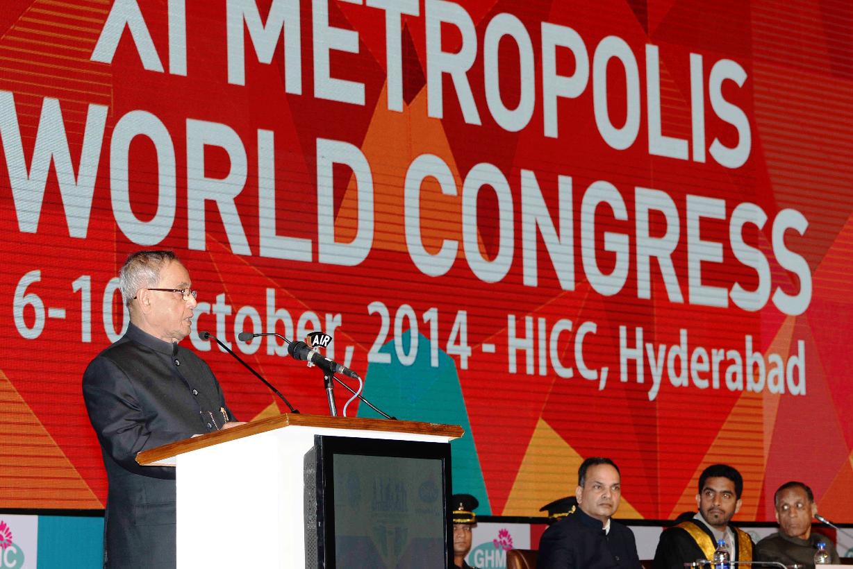 | Caption: | The President of India, Shri Pranab Mukherjee at the Closing Ceremony of the 11th Metropolis World Congress, 2014 at Hyderabad in Telangana on Oct 09, 2014 |