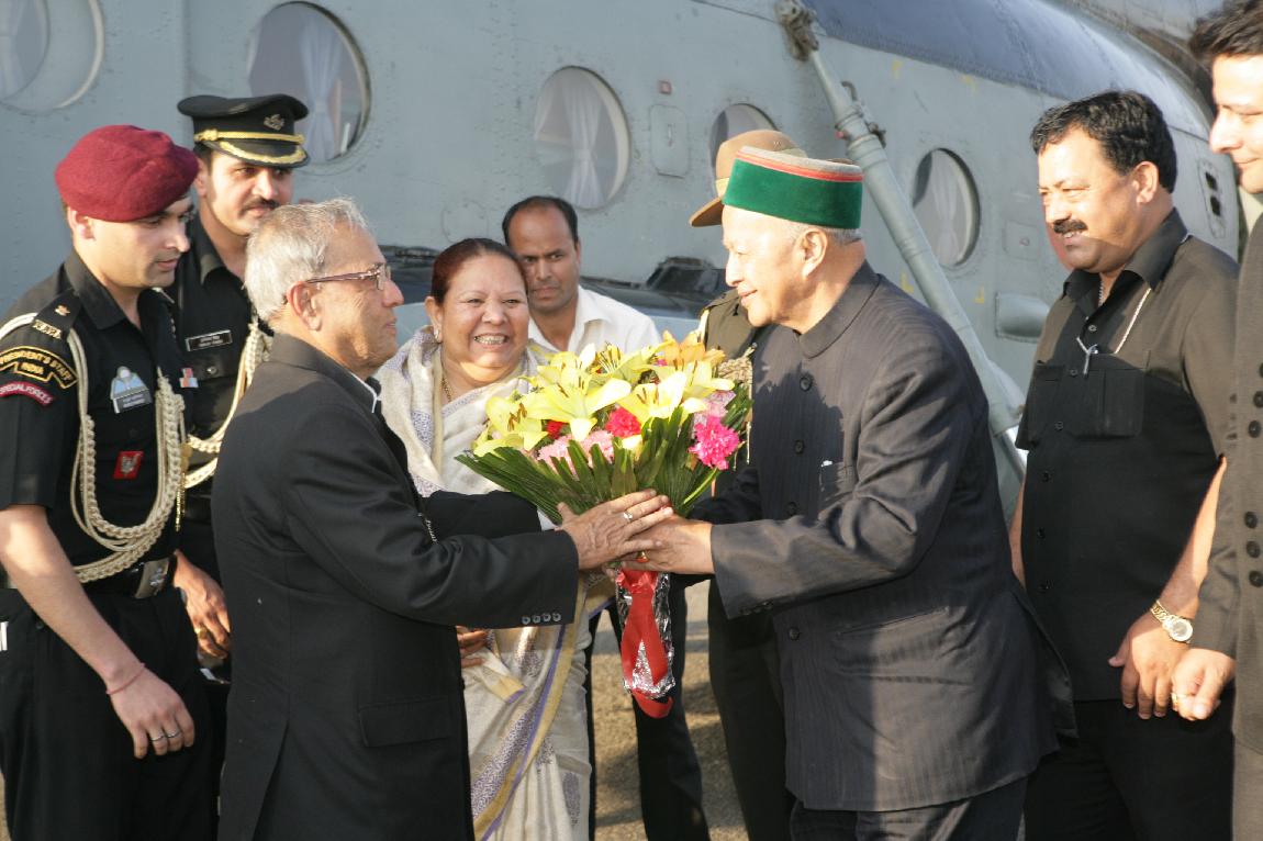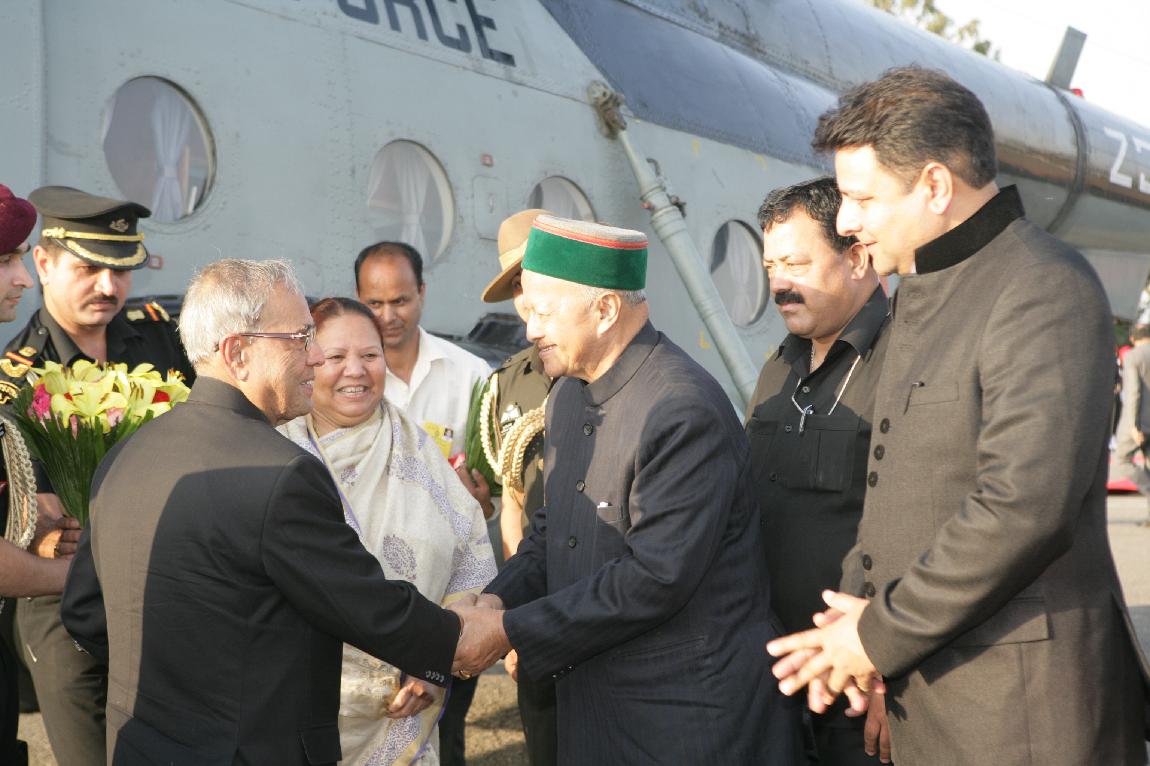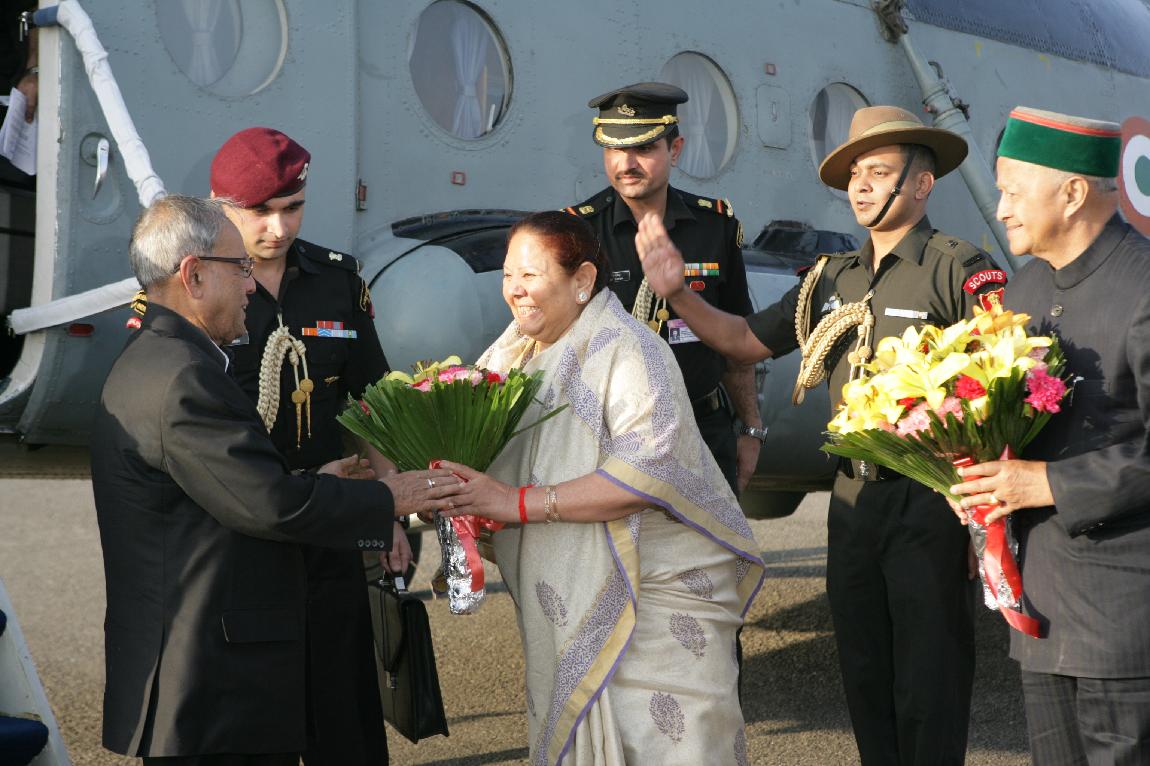 The President of India, Shri Pranab Mukherjee Arrival at Kalyani Helipad Mashobra on 23 May 2013