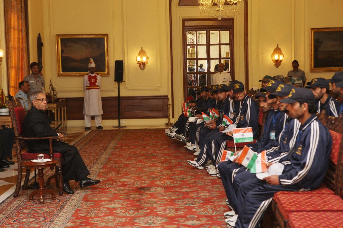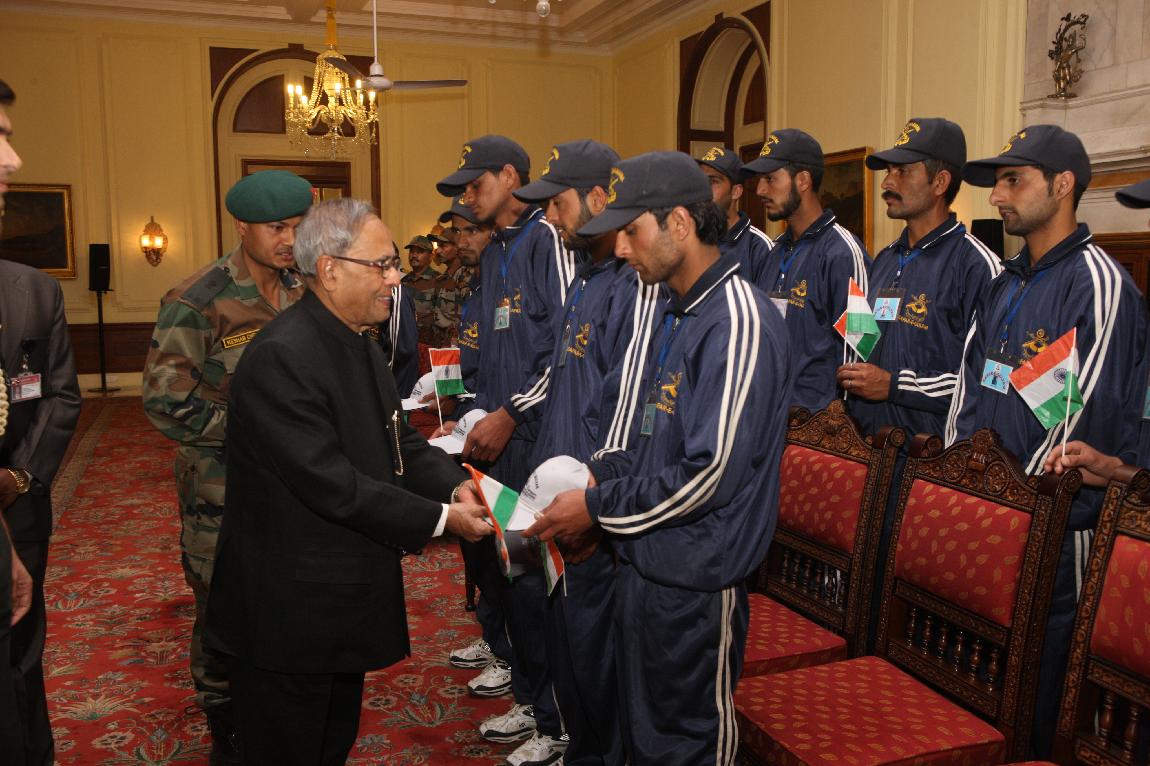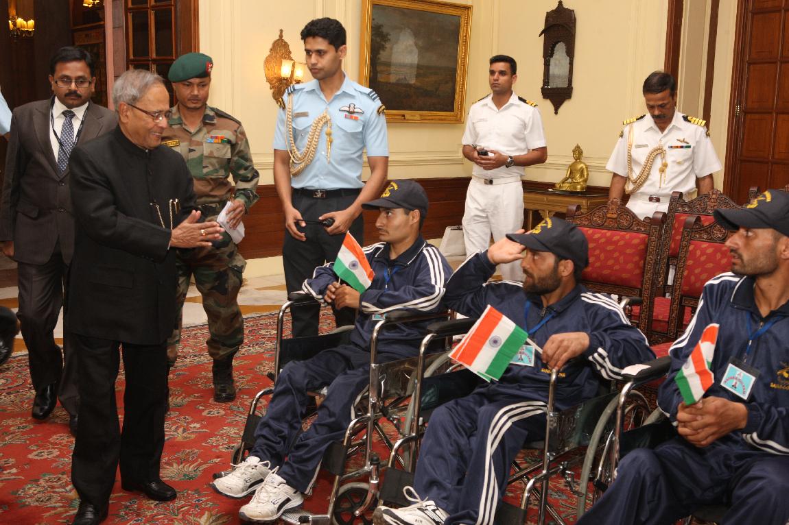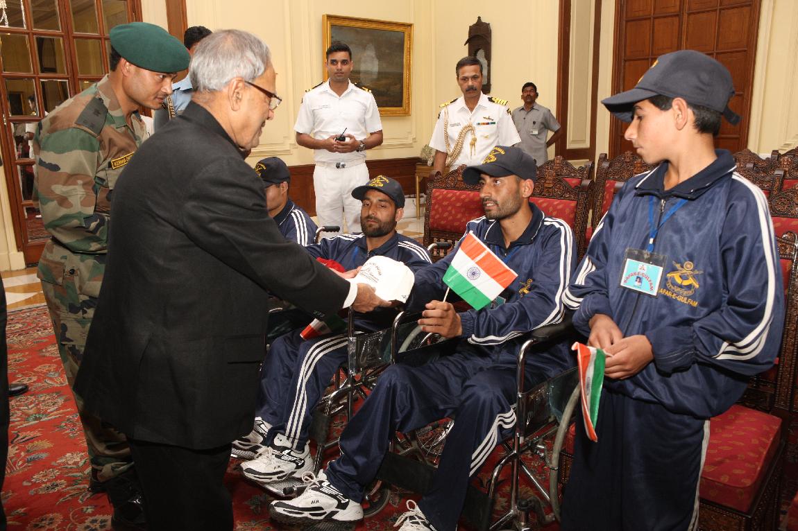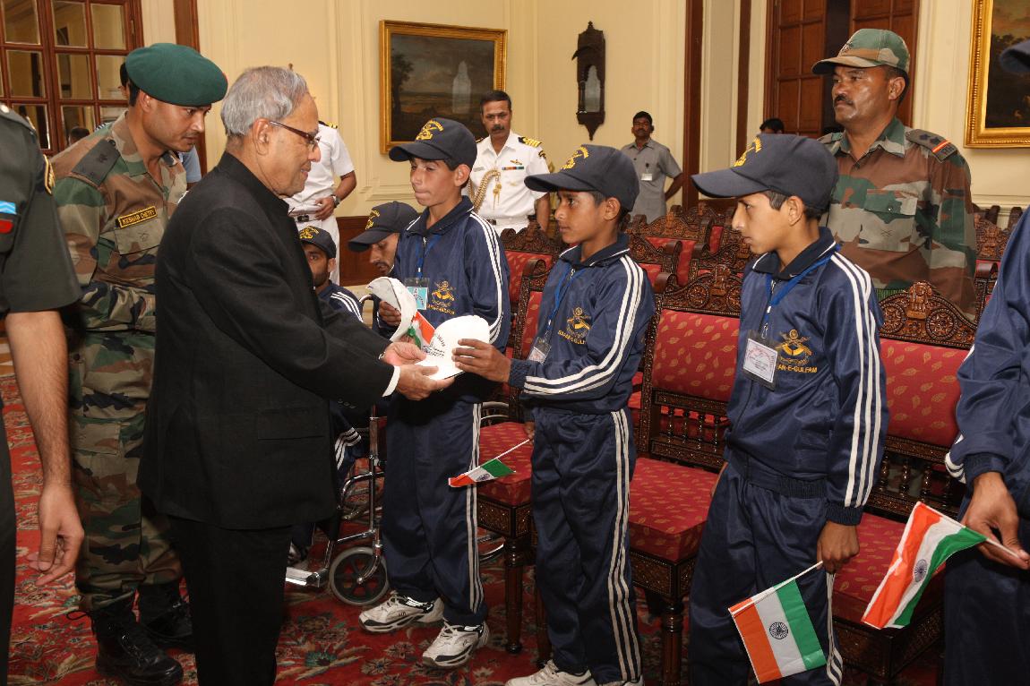 | Caption: | The President of India, Shri Pranab Mukherjee Meet Differently-abled Children form Banihal Ramban District Jammu & Kashmir on 03 May 2013 |
