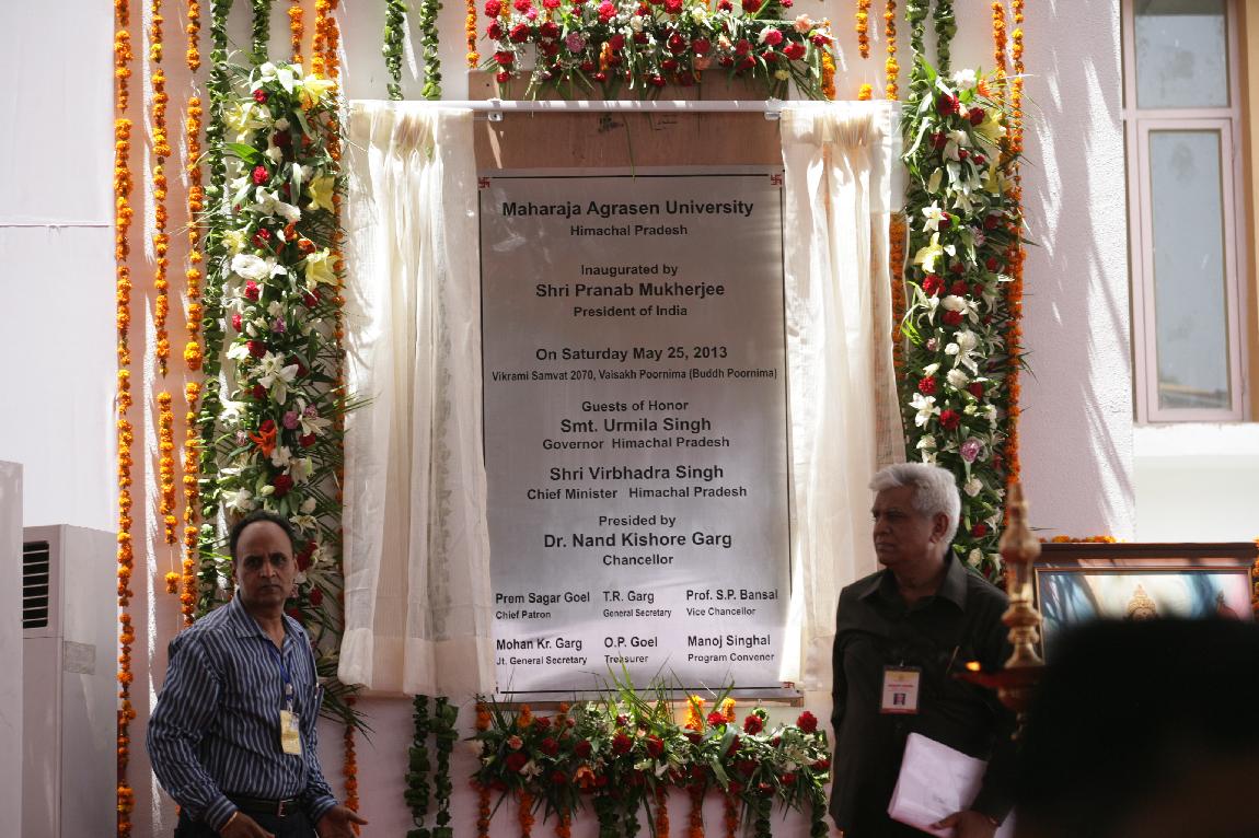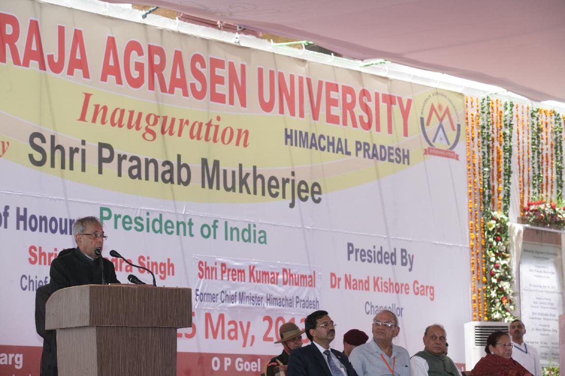 | Caption: | The President of India, Shri Pranab Mukherjee Inauguration of Maharaja Agrasen University on 25 May 2013 |