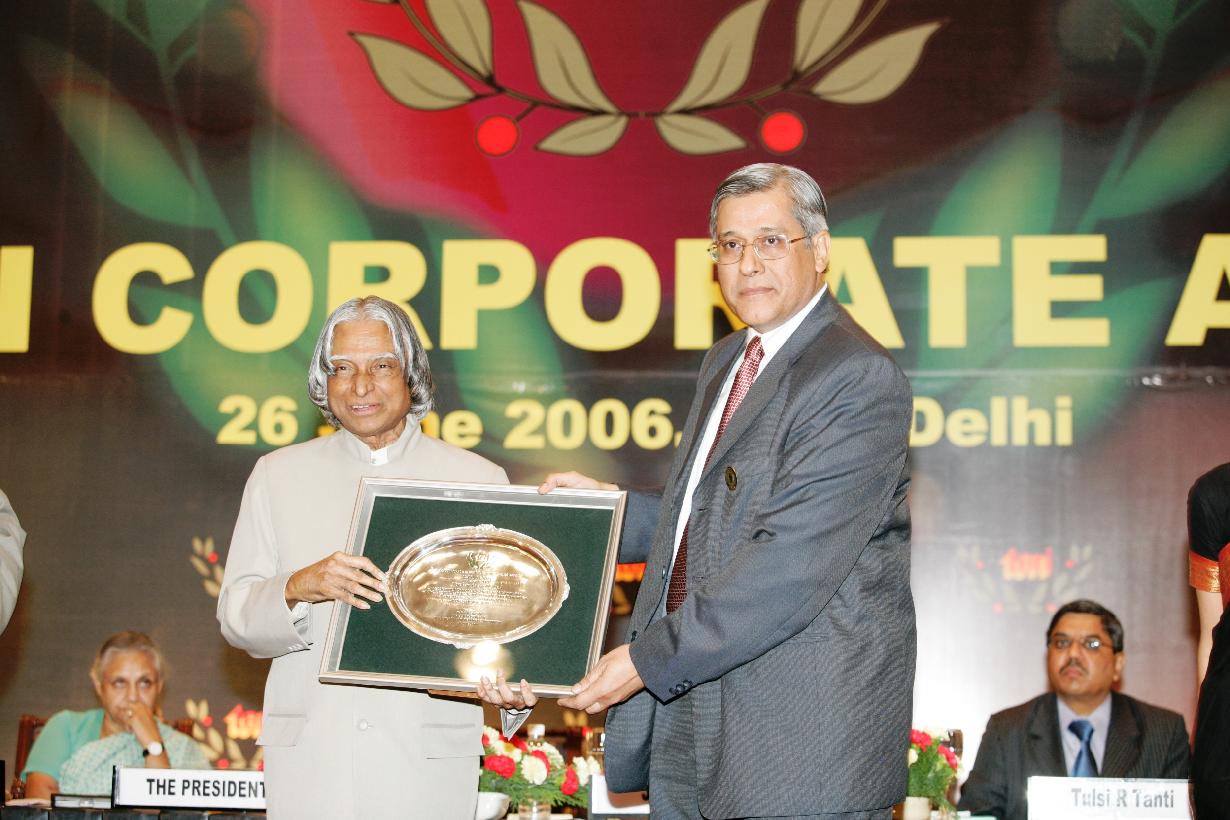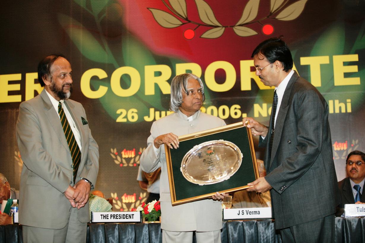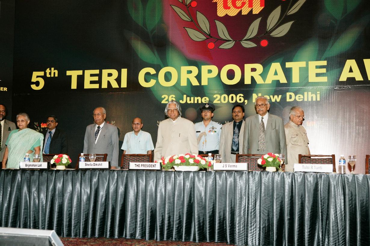 | Caption: | The President of India, Dr A P J Abdul Kalam presenting the Energy and Resources Institute (TERI) Corporate Awards at the Hotel Ashok, Chanakyapuri in New Delhi on June 26, 2006 |