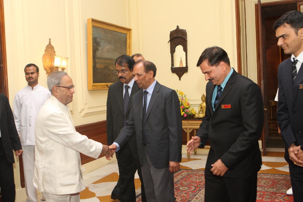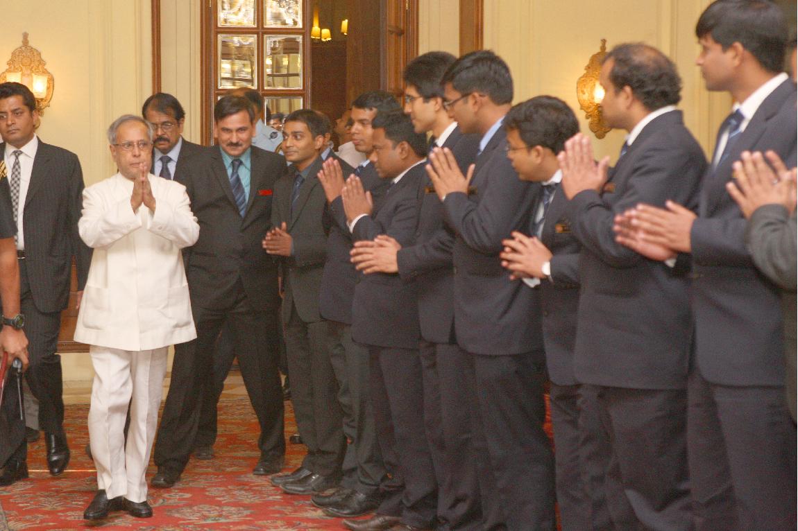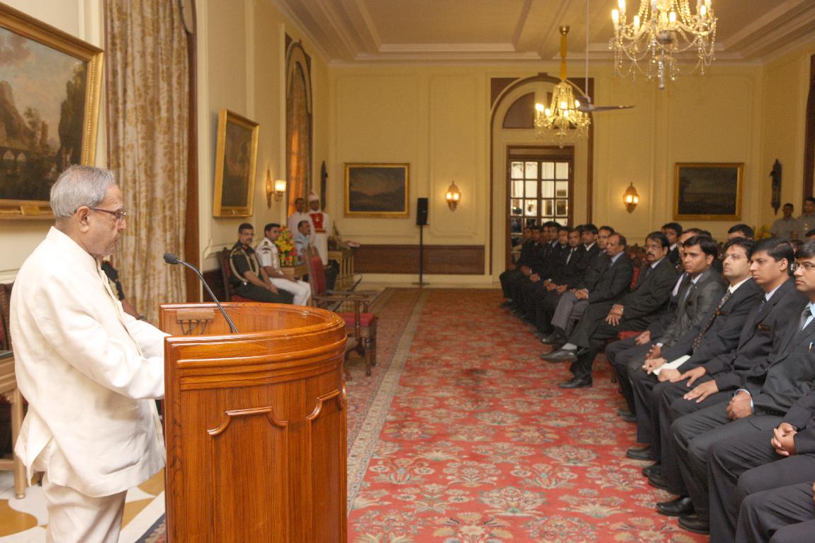 | Caption: | The President of India, Shri Pranab Mukherjee Meeting the Probationers of Indian Ordnance Factories Service - 2012 on 30 May 2013 |