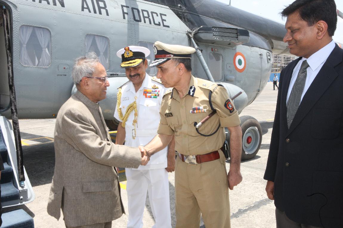 The President of India, Shri Pranab Mukherjee Arrival at INS Shikra on 31 May 2013