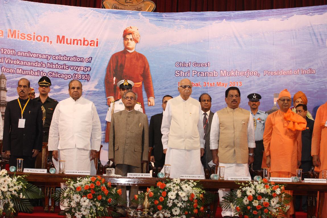 | Caption: | The President of India, Shri Pranab Mukherjee 120th Anniversary of Swami Vivekananda's Voyage from Gateway of India to West on 31 May 2013 |
