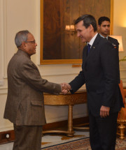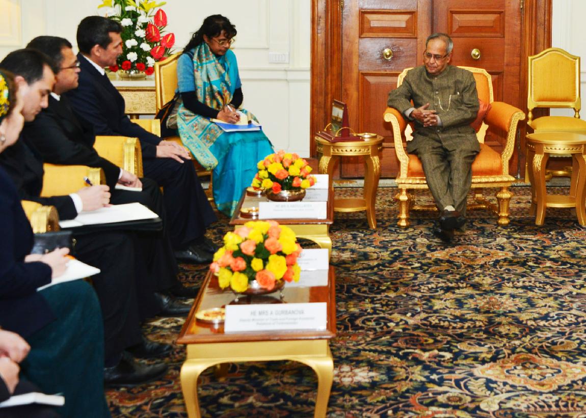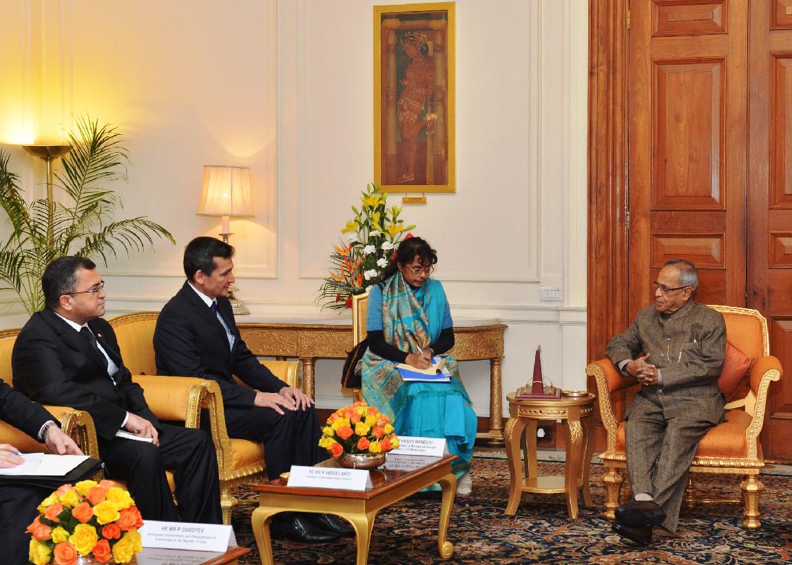 | Caption: | The Deputy Prime Minister and Foreign Minister of Turkmenistan, HE Mr Rashid Meredov calling on the President of India, Shri Pranab Mukherjee at Rashtrapati Bhavan in New Delhi on Jan 21, 2013 |