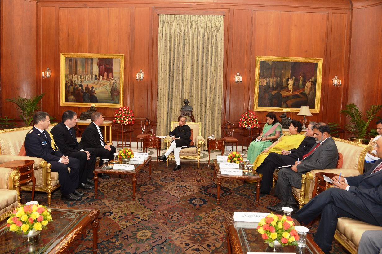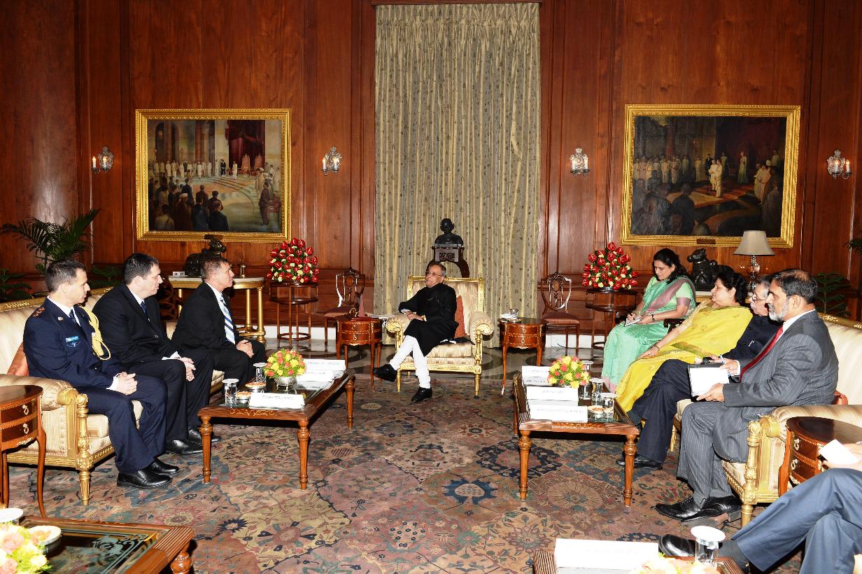 | Caption: | The Ambassador-Designate of Israel, HE Mr Daniel Carmon presenting his credential to the President of India, Shri Pranab Mukherjee at Rashtrapati Bhavan in New Delhi on July 31, 2014 |
